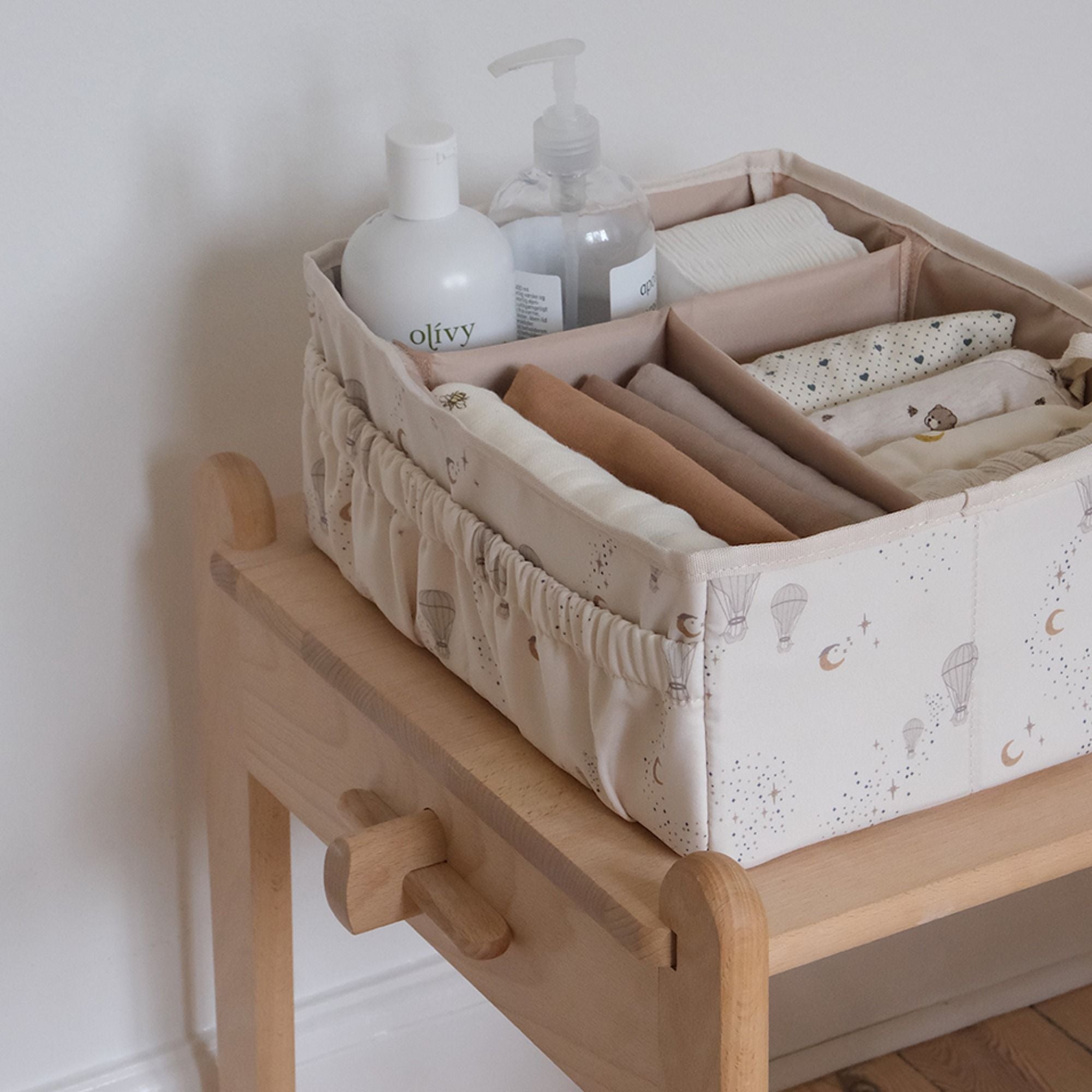 Mit der Windelaufbewahrungsbox können Sie die Dinge, die Sie während der Windelzeit benötigen, ganz einfach organisieren. Die Box eignet sich perfekt zur Aufbewahrung von Windeln, Cremes, Stoffwindeln und anderen wichtigen Windelutensilien.