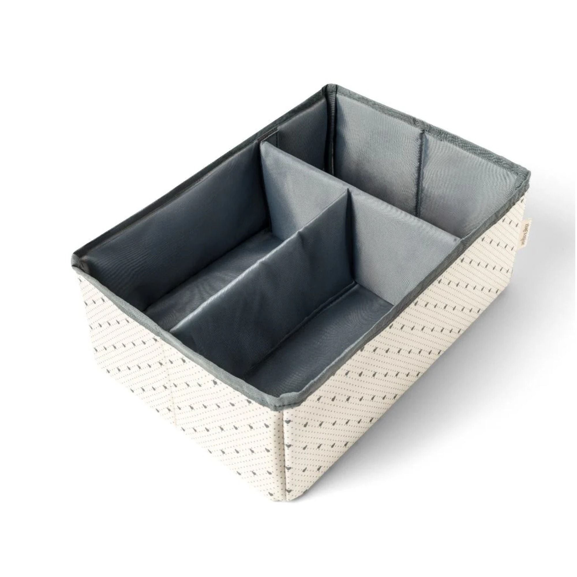 Die Aufbewahrungsbox besteht aus einem großen Fach mit herausnehmbaren Fachteilern – mit praktischem Klettverschluss, so entscheiden Sie selbst, ob Sie ein großes Fach oder drei kleinere Fächer wünschen.