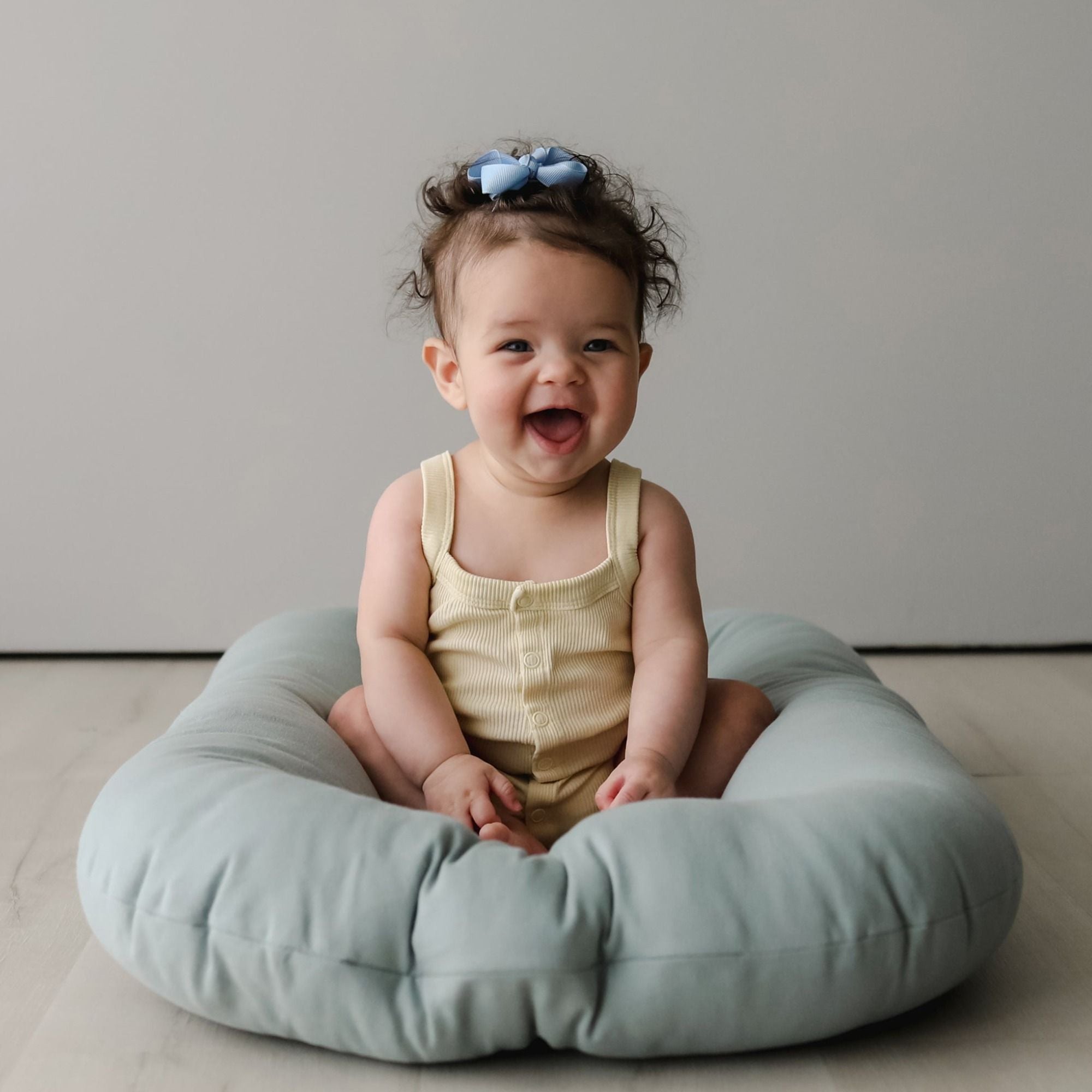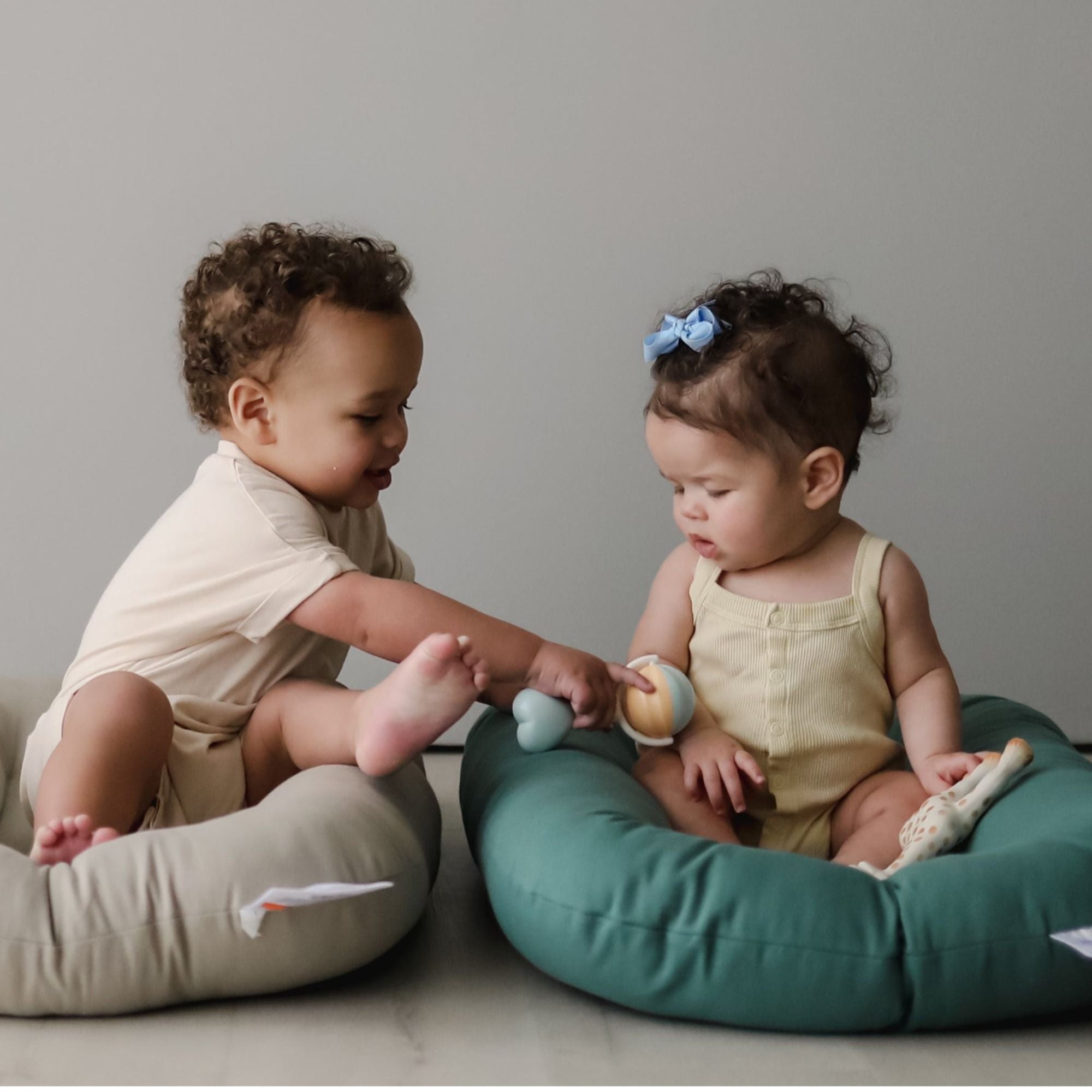 Der Snuggle Me ist so konzipiert, dass er sich an den Körper Ihres Babys anschmiegt und einen kuscheligen Platz zum Spielen schafft. Der Snuggle Me ist für die aktive Beschäftigung, das Spielen und die Bindung mit Ihrem wachen Kind gedacht. Der Infant Lounger ist nicht zum Schlafen gedacht.