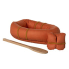 Dieses kleine Schlauchboot ist aus Stoff und wird mit Schwimmweste und Paddel geliefert. Es ist nicht wasserdicht, man muss sich also vorstellen, auf dem Wasser zu schweben. Dieses Set passt auf alle Mäusegrößen.