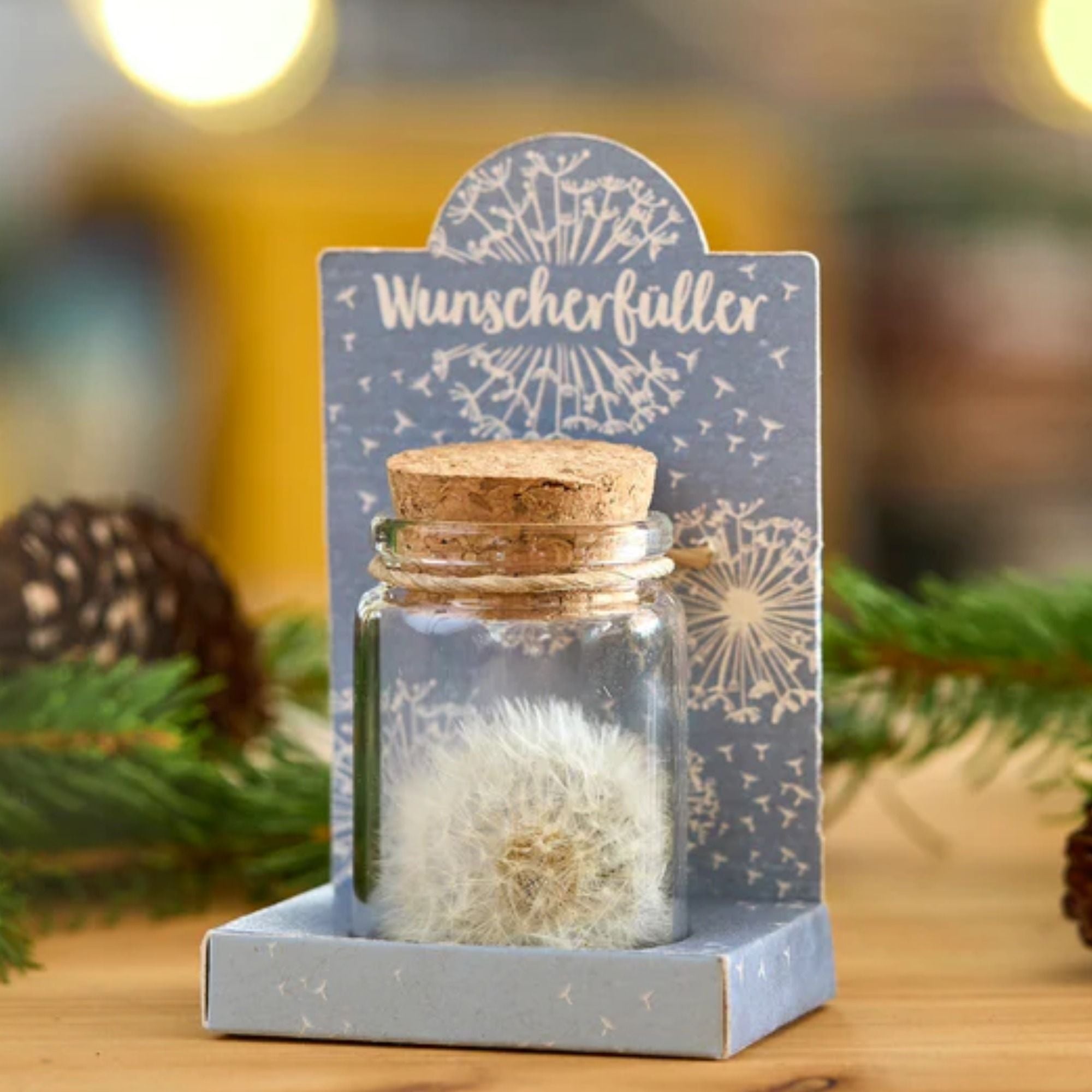 Erwecke Kindheitserinnerungen und schenke einen besonderen Moment mit dem Wunscherfüller in strahlendem Blau. Diese echte Pusteblume im Glas ist nicht nur ein wunderschönes Symbol für Hoffnung und Träume, sondern auch ein kreatives Geschenk mit Bedeutung.