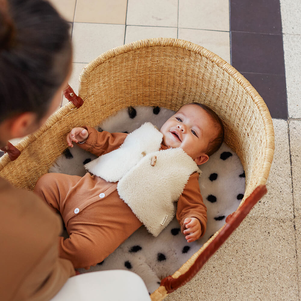 Die Schafsfell-Buggyeinlagen sind moderne, kuschelige Erbstücke, die man immer wieder gerne weitergibt. Handgefertigt aus dem feinsten Merino-Schafsfell der Welt, produzieren sie BINIBAMBA ethisch, achtsam (Binibabes verschwenden nichts!) und nachhaltig. Sie legen Wert auf langsame Mode, die langlebig ist, die Erde respektiert und beim Kuscheln groß geschrieben wird. In jeder Phase der Produktion und Lieferung berücksichtigen sie die Nachhaltigkeit der Prozesse, Verpackungen und Abfälle.