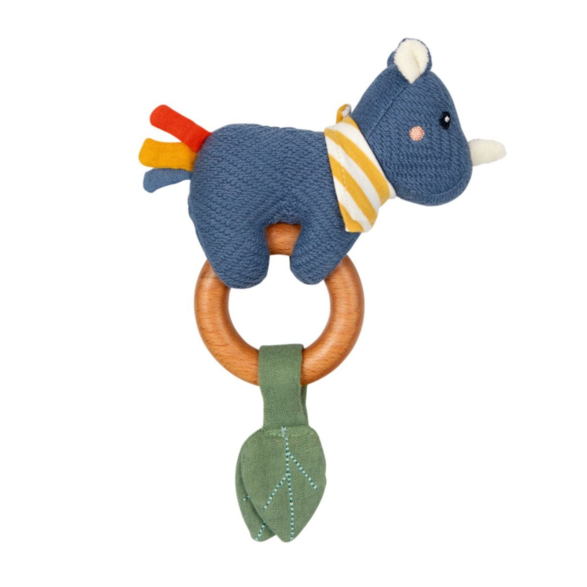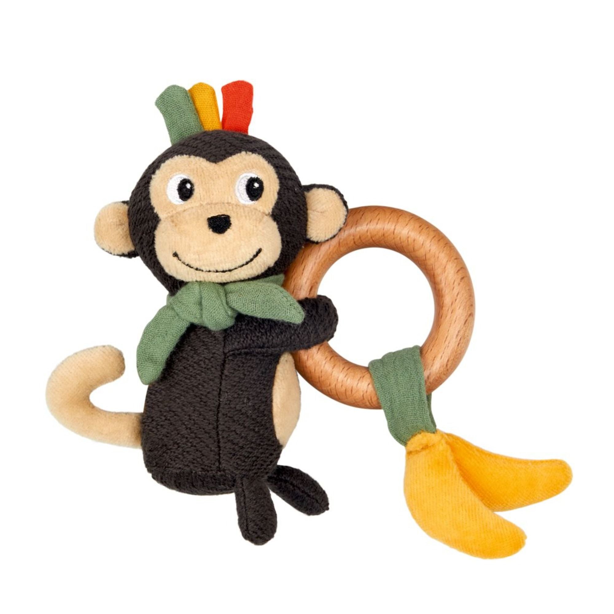 Die Holz-Ringrassel aus der „Little Wonder"-Kollektion von Die Spiegelburg sorgt für spielerische Unterhaltung bei den Kleinsten. Sie lässt sich leicht greifen und ist ideal für erste Rasselversuche. Der sanfte Klang regt die Sinne an, fördert die akustische Wahrnehmung und unterstützt die motorische Entwicklung. Dank der abwaschbaren Oberfläche ist die Rassel zudem besonders pflegeleicht – ein liebevoller Begleiter mit fröhlichem Dschungeltieren