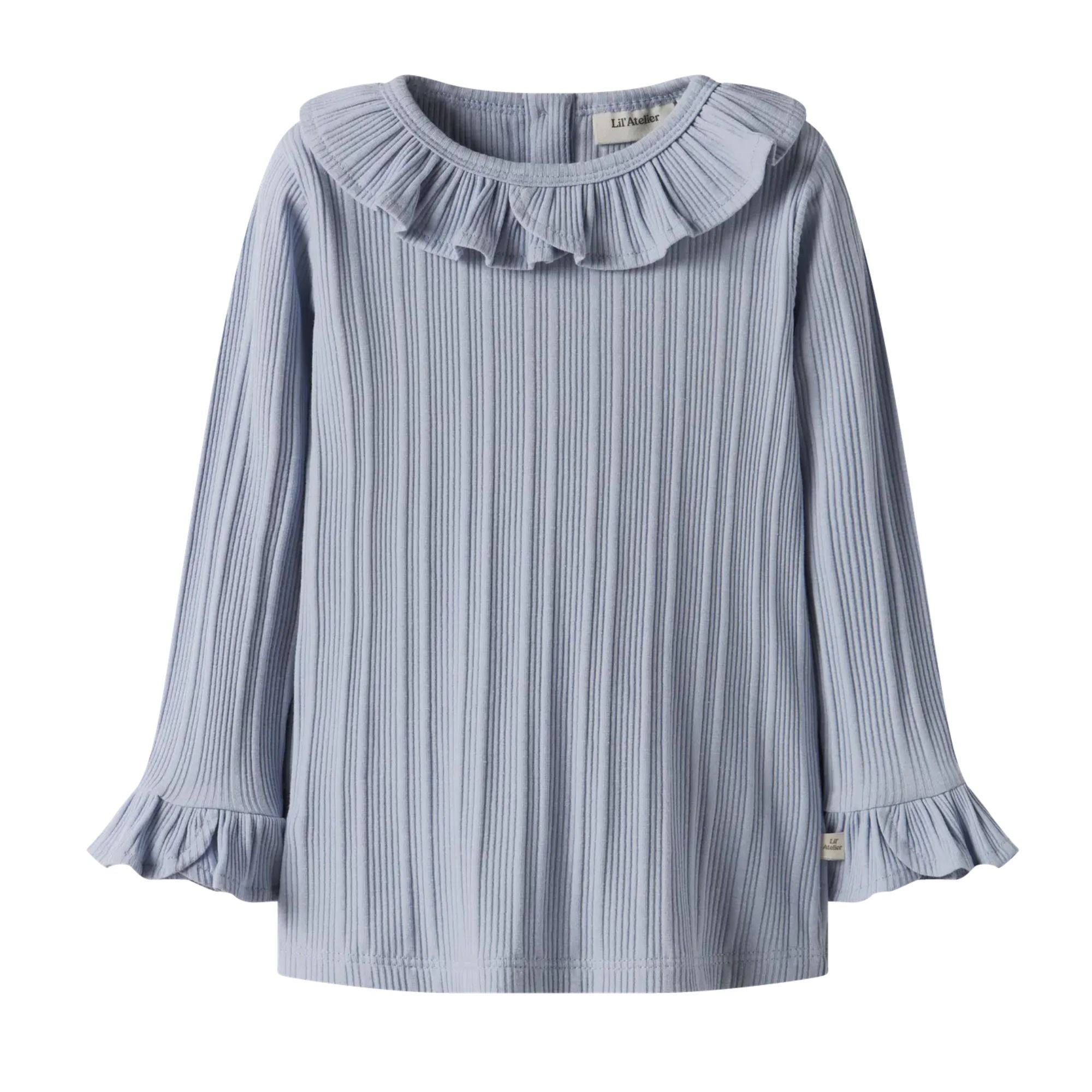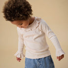 Kinder Langarm-Rippshirt mit Rüschenkragen aus Bio-Baumwolle von Lil' Atelier
