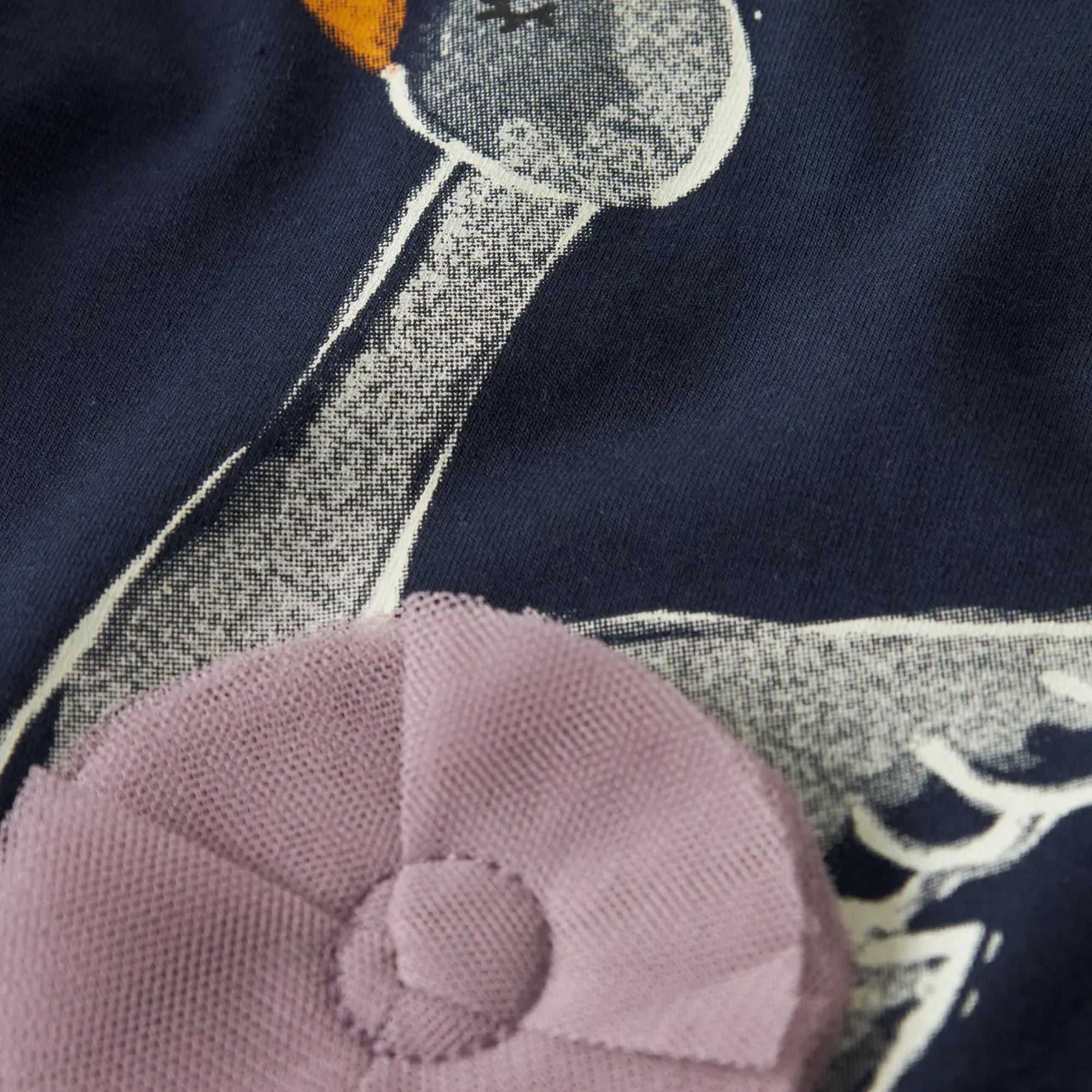 Dieses bezaubernde Kinder-Langarmshirt aus weicher Bio-Baumwolle vereint Komfort mit verspieltem Design. Die gerafften Schultern verleihen dem Shirt eine zarte, kindgerechte Note, während die Tüllapplikation auf dem Schwanen-Print auf der Vorderseite für einen zauberhaften 3D-Effekt sorgt. Angenehm weich auf der Haut, eignet sich das Shirt perfekt für Alltag, Kindergarten oder besondere Anlässe und lässt Kinderträume wahr werden.