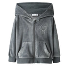 Kinder-Velours-Sweatjacke aus besonders weichem, samtigem Material, die mit einer großen, gemütlichen Kapuze für zusätzlichen Wohlfühlfaktor sorgt. Eine liebevoll platzierte Stickerei auf der Brust setzt einen stilvollen, kindgerechten Akzent und verleiht dem Design eine besondere Note. Der bequeme Schnitt und das anschmiegsame Material bieten hohen Tragekomfort, während die Jacke sich vielseitig kombinieren lässt, perfekt für Alltag, Freizeit und kuschelige Momente.