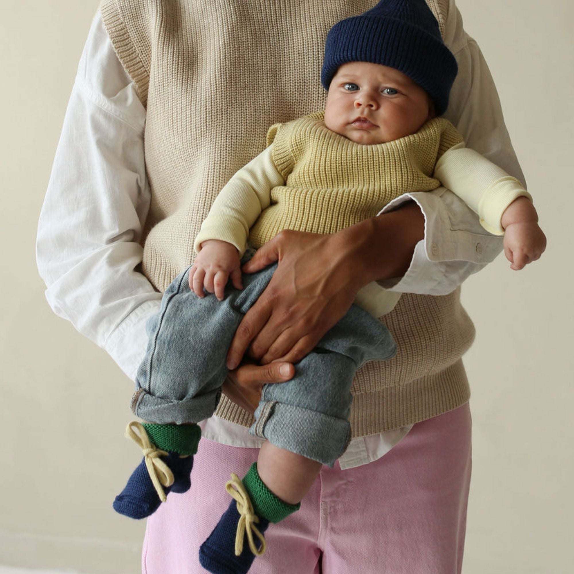 Booties Babyschuhe Gesterickt Colorblock aus Merinowolle