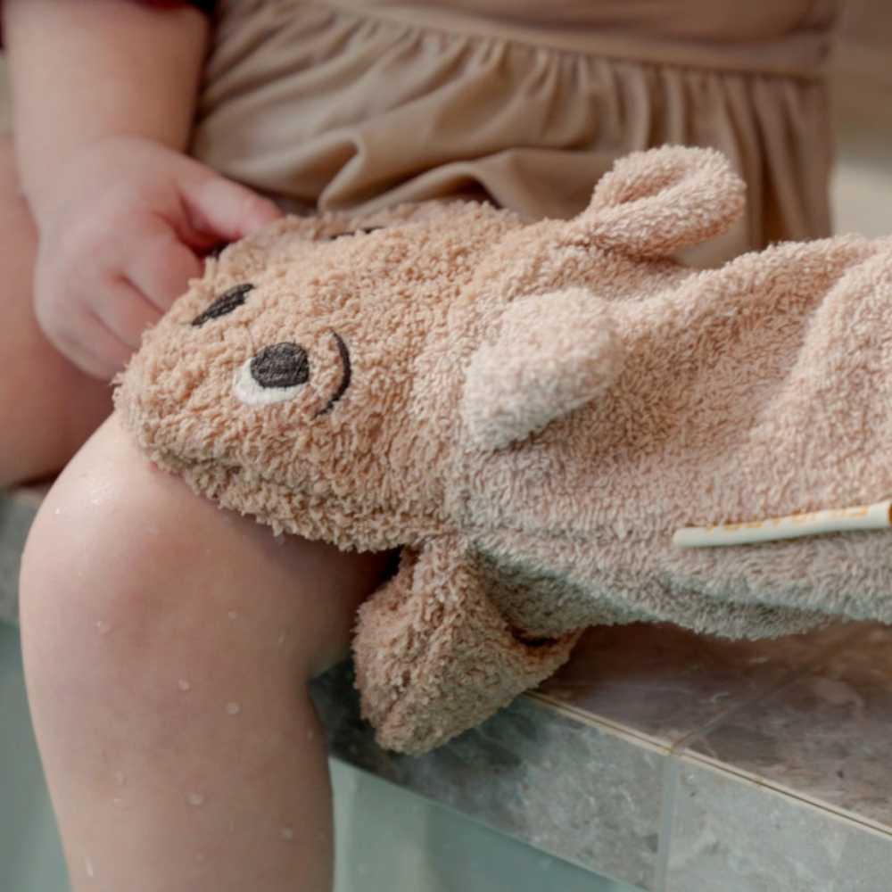 Mit unserem niedlichen Waschhandschuh mit Bärengesicht gehen nicht nur das Baby, sondern auch größere Kinder gerne in die Wanne. Unser Waschhandschuh ist aus kuschelig weichem Baumwoll-Frotté hergestellt, das natürlich 100 % -zertifiziert ist. So macht Baden einen Bären-Spaß!