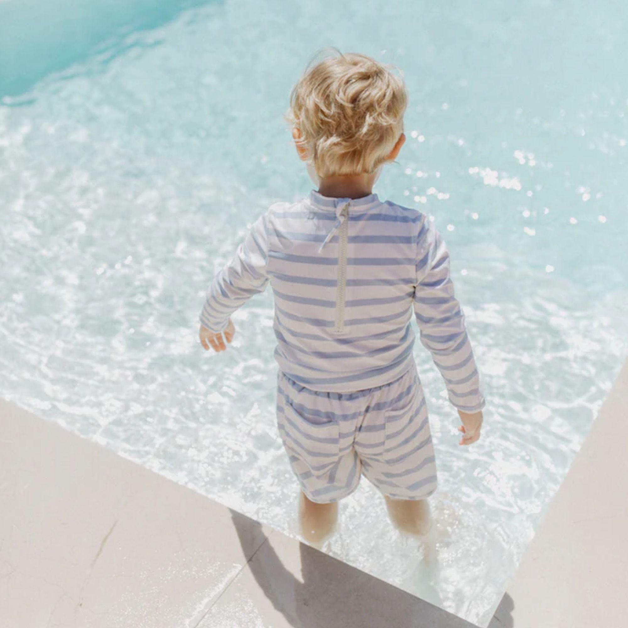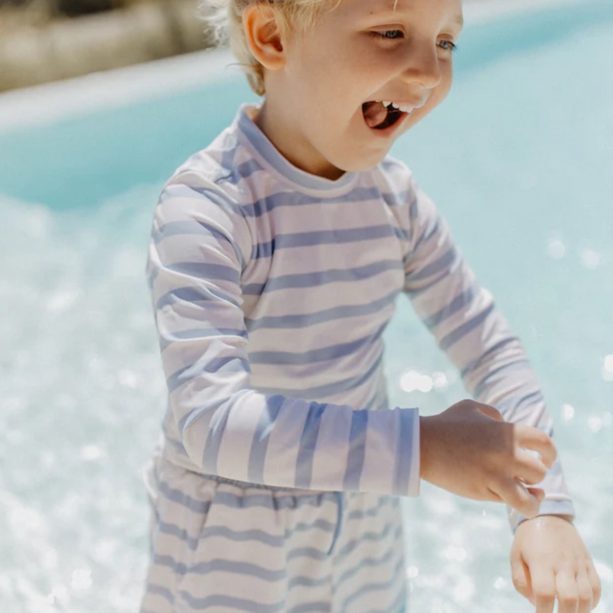 Hergestellt aus schnelltrocknendem, atmungsaktivem Material, bietet das Shirt höchsten Tragekomfort – auch an heißen Tagen. Der weiche, elastische Stoff sorgt für maximale Bewegungsfreiheit, sodass sich kleine Abenteurer rundum wohlfühlen. Die langen Ärmel bieten zusätzlichen Schutz, während das zeitlose Design leicht mit Badehosen oder Shorts kombiniert werden kann.