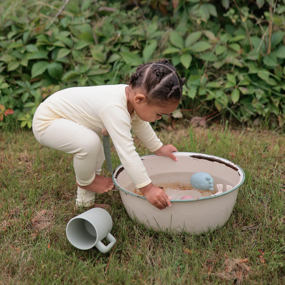 Mit dem Badespielset können Sie beim Baden für Aufregung sorgen. Das weiche Material besteht zu 100 % aus lebensmittelechtem Silikon und ist sowohl im nassen als auch im trockenen Zustand für kleine Hände leicht zu greifen. Einer der Hauptvorteile von Badespielsets besteht darin, dass sie den Kindern die Badezeit angenehmer machen. Dies kann Eltern die Mühe ersparen, ihre Kleinen zum Baden zu überreden. Jedes Badespielzeug ist so konzipiert, dass es sich in zwei getrennte Teile öffnen lässt, um eine gründliche Reinigung und ein schnelles Trocknen zu ermöglichen, damit es schimmelfrei bleibt.