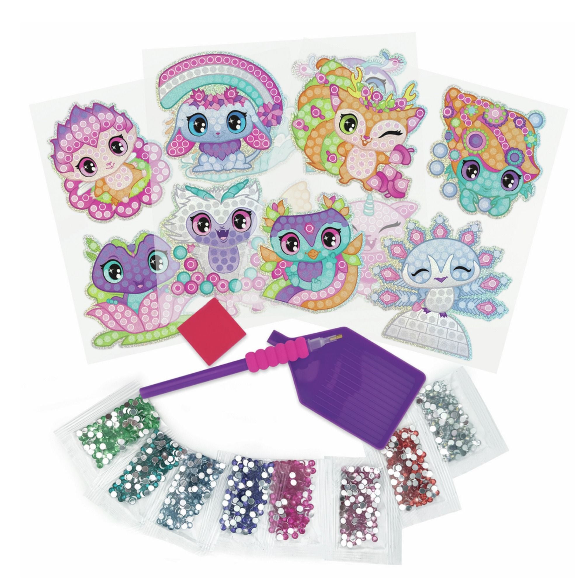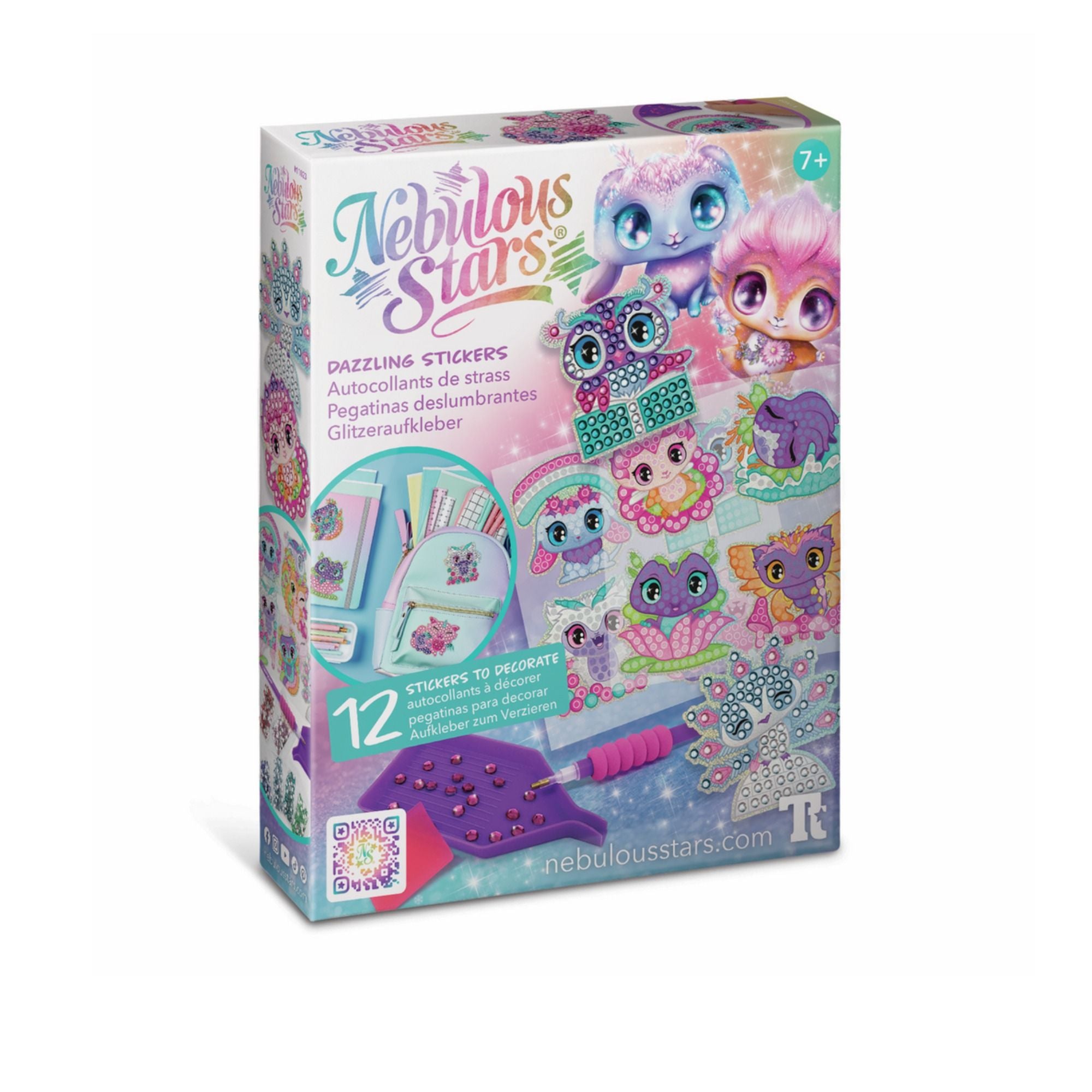 Tauche ein in die funkelnde Welt der Nebulous Stars und hilf den süßen Tierfreunden, den Animoulous, dabei, richtig zu strahlen! Mit diesem magischen Set kannst du zwölf tolle Aufkleber in echte Schmuckstücke verwandeln. Es ist ganz einfach: Du bekommst über 1480 winzige, bunte Glitzersteine – sie sehen aus wie winzige Diamanten! Nimm einfach deinen Spezial-Stift, der dir beim Picken hilft, und setze die Steinchen auf die Sticker. Schau genau hin, denn die Sticker haben nummerierte Felder, damit du genau weißt, wo die Farben hingehören. Es ist wie Malen-nach-Zahlen, nur mit viel mehr Glitzer! Wenn du alle Steinchen gesetzt hast, sind deine Aufkleber fertig und funkeln wunderschön. Klebe sie auf dein Lieblingsheft, dein Handy oder deine Schatzkiste und zeige allen dein glänzendes Kunstwerk! Ein toller Bastelspaß für alle, die gerne kreativ sind und es lieben, wenn etwas funkelt.