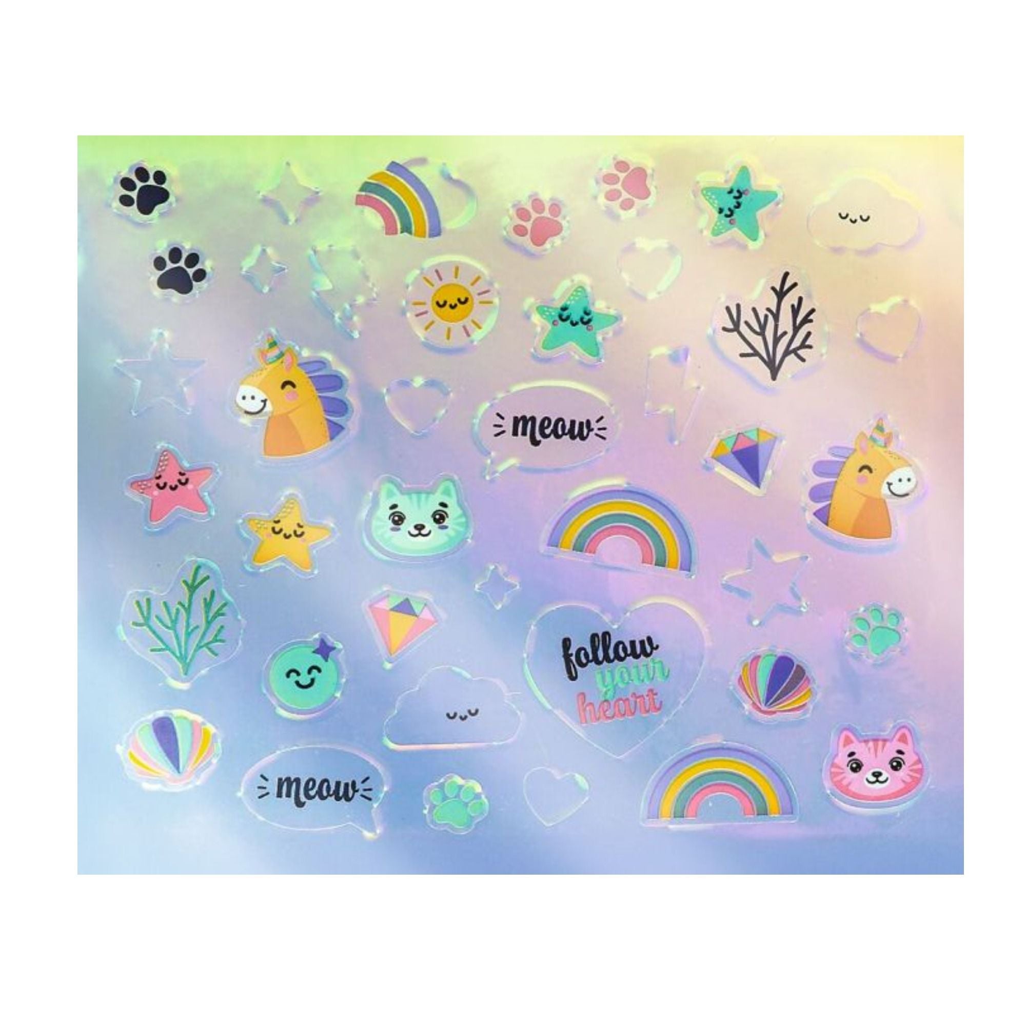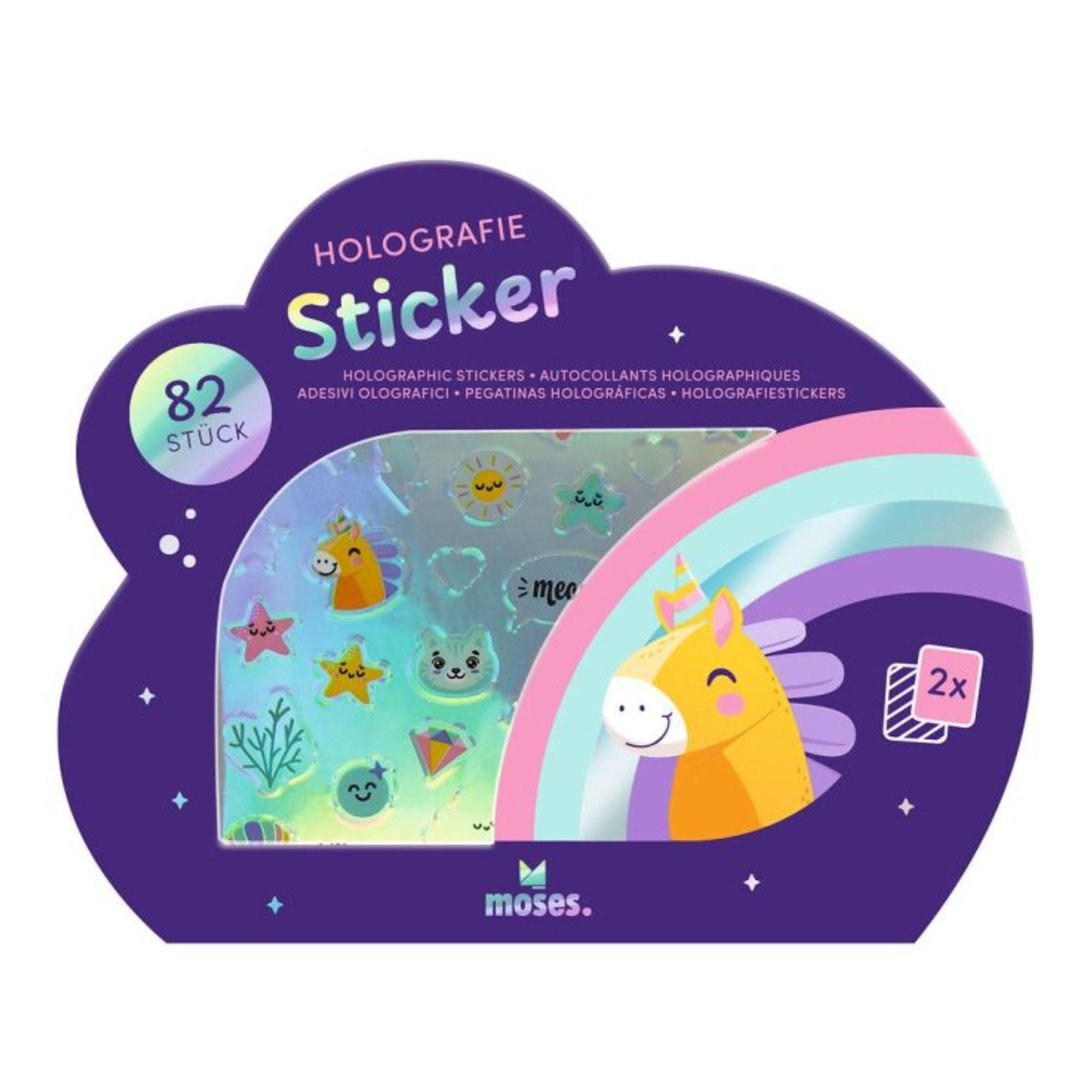 Diese liebevoll gestalteten Sticker bringen zauberhafte Motive wie Katzen, Regenbögen, Sterne oder Fische mit funkelndem Holografie-Effekt auf Hefte, Karten oder Geschenke. Mit insgesamt 82 Stickern auf zwei Bögen bietet das Set eine bunte Vielfalt in unterschiedlichen Größen und lädt zu kreativem Gestalten ein. Die Sticker lassen sich leicht abziehen, haften zuverlässig auf glatten Oberflächen und verwandeln kleine Kunstwerke in glänzende Highlights.