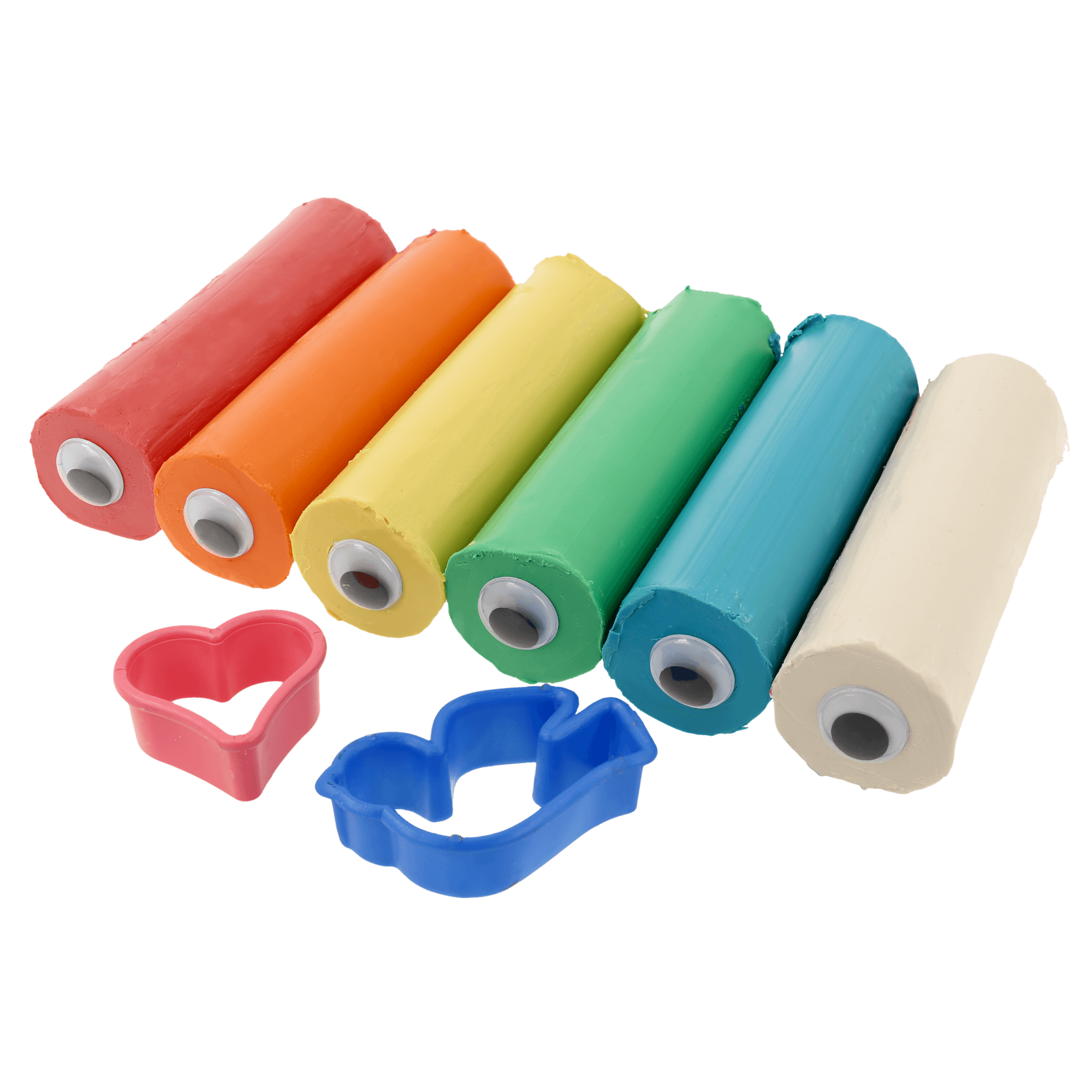 Im Lieferumfang sind 6 Stangen Knete, 6 Wackelaugen und 2 Ausstecher enthalten.