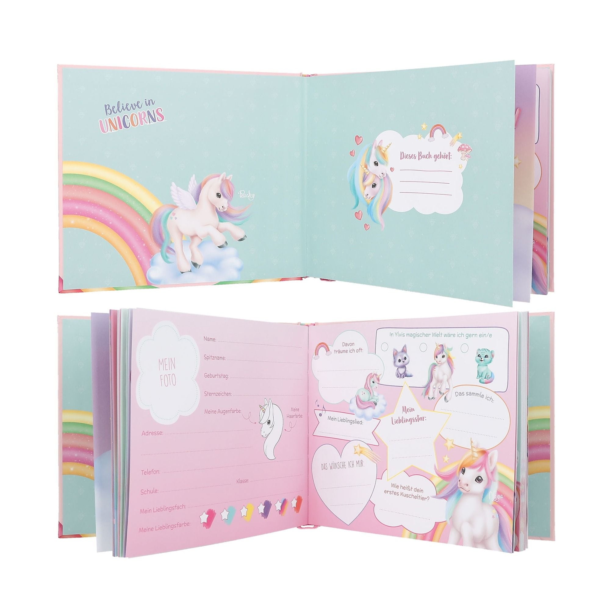 Bunt wie das Leben! Das Freundebuch von Ylvi in fröhlichen Bonbon-Farben hat auf der Front und im Inhalt jede Menge niedliche Einhörner und andere magische Wesen. Mit 108 liebevoll illustrierten Seiten und jeder Menge Platz für die Antworten von Freunden und Lehrern. Zum Eintragen, Erinnern und immer wieder Anschauen.