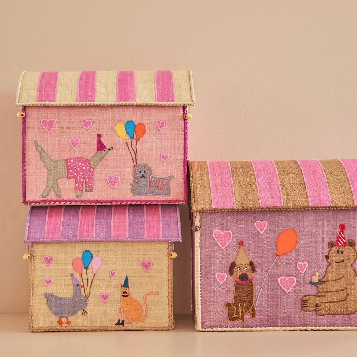 Large Bear Raffia Toy Basket Party Animals Print - Aufbewahrungskorb aus Raffia-Naturbast von Rice