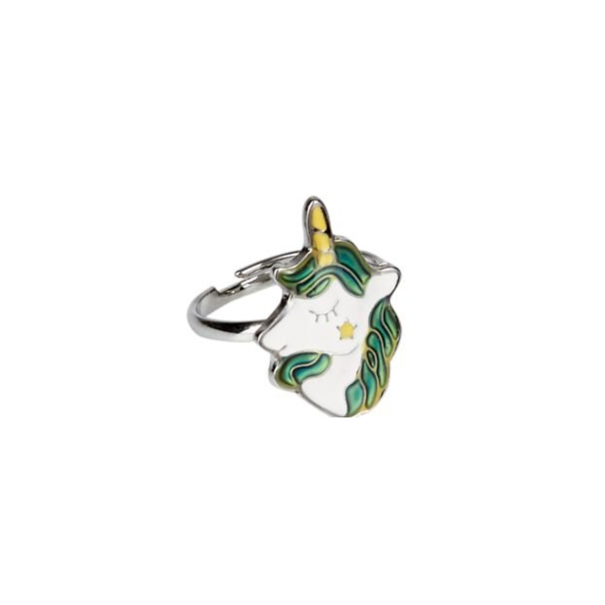 Zauberhafter Stimmungsring mit einem Einhorn-Motiv in drei verschiedenen Designs, das je nach Stimmung die Farbe ändert. Der Ring ist in der Größe verstellbar.