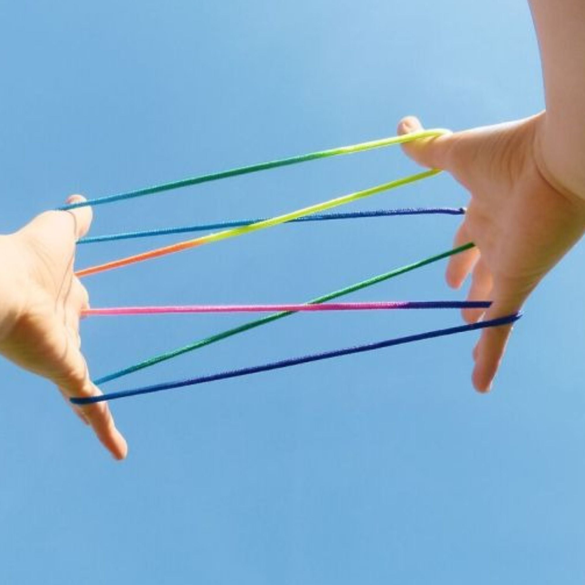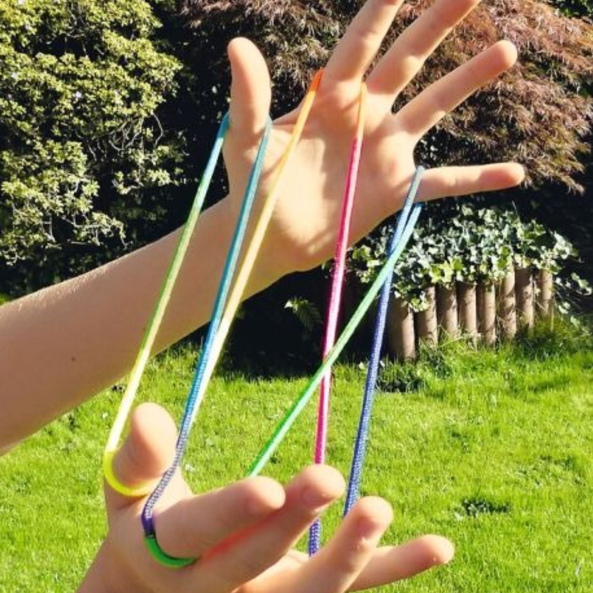 Das ca. 184 cm lange Band lädt mit seinem farbenfrohen Look sofort zum Ausprobieren ein. Besonders praktisch: Die beiliegende, bebilderte Schritt-für-Schritt-Anleitung erklärt zwei Figuren, die auch ganz ohne Mitspieler gelingen – ideal für unterwegs oder zwischendurch.