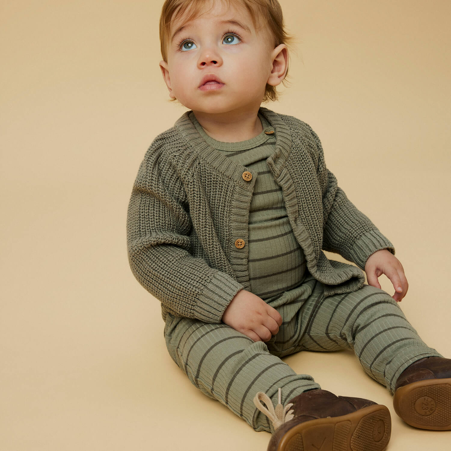 Dieser Babybody aus Bio-Baumwolle bietet eine nachhaltige und gleichzeitig komfortable Wahl für den Alltag. Gefertigt aus weichem Jersey, überzeugt er durch seine leichte, dehnbare Qualität, die sanft auf der Haut liegt und maximale Bewegungsfreiheit ermöglicht. Der Grandad-Kragen verleiht dem Body eine moderne Note, während die schräger Knopfleiste vorn sowie praktische Druckknöpfe im Schritt das An- und Ausziehen besonders einfach machen. Eine kleine Brusttasche rundet das liebevoll gestaltete Design stilvoll ab – ideal für entspannte Tage und bewegte Momente.