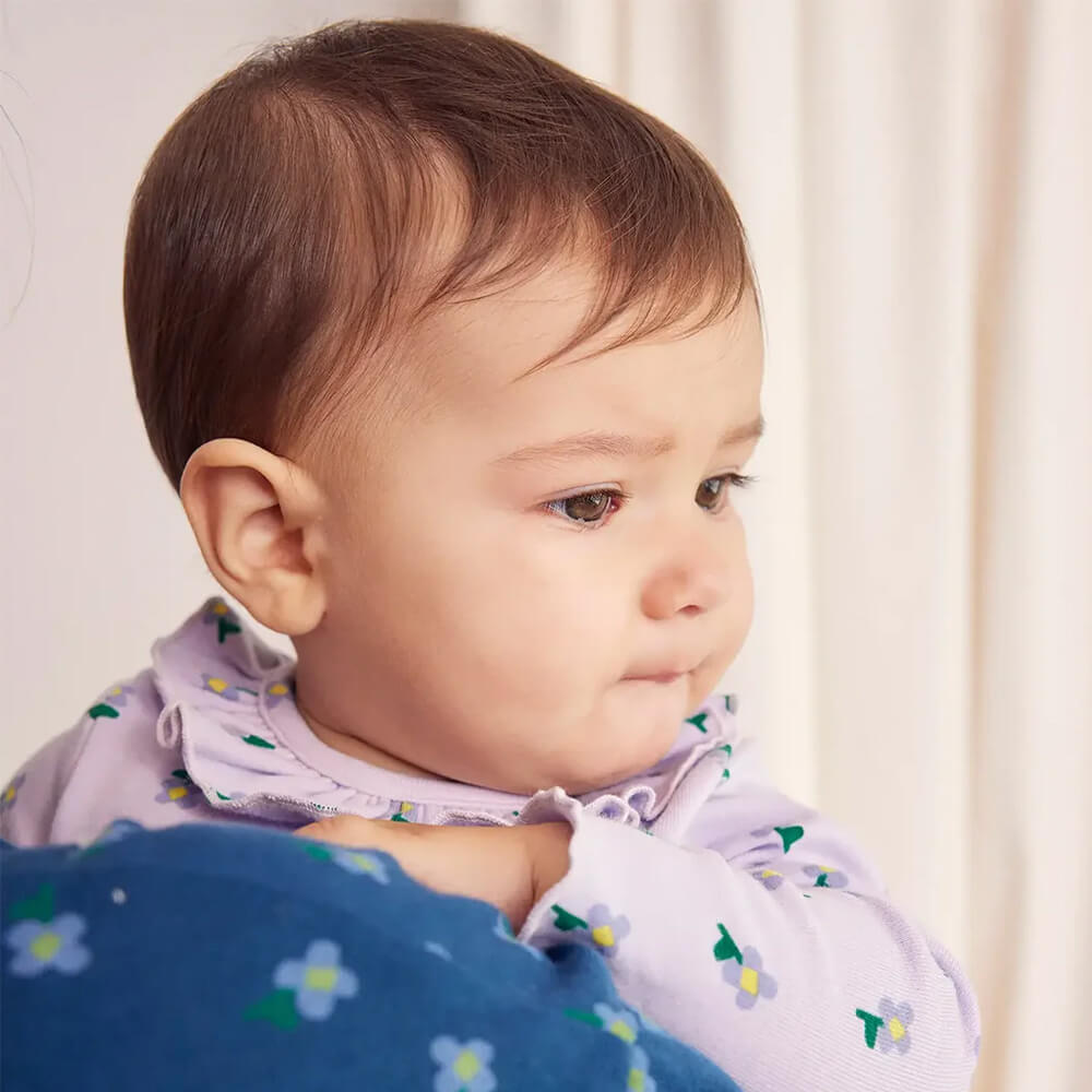 Der langarm Body ist aus Bio-Baumwolle gefertigt. Er hat einen stylischen All-Over Blumenprint sowie Rüschendetails am Rundhalsausschnitt. Mit Druckknöpfen im Schritt und am Rundhalsausschnitt für ein leichtes An- und Ausziehen.