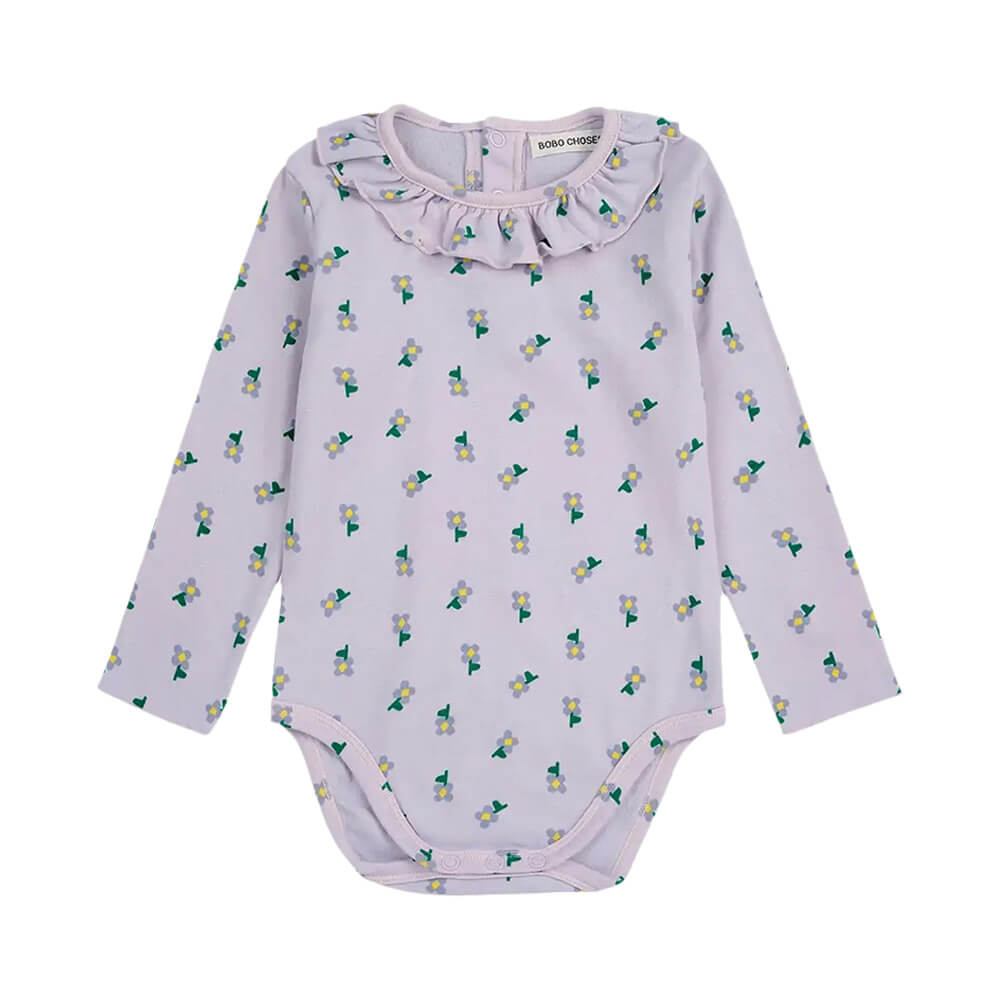 Baby Pansy Flower Ruffle Body - Langarmbody aus Bio-Baumwolle von Bobo Choses