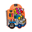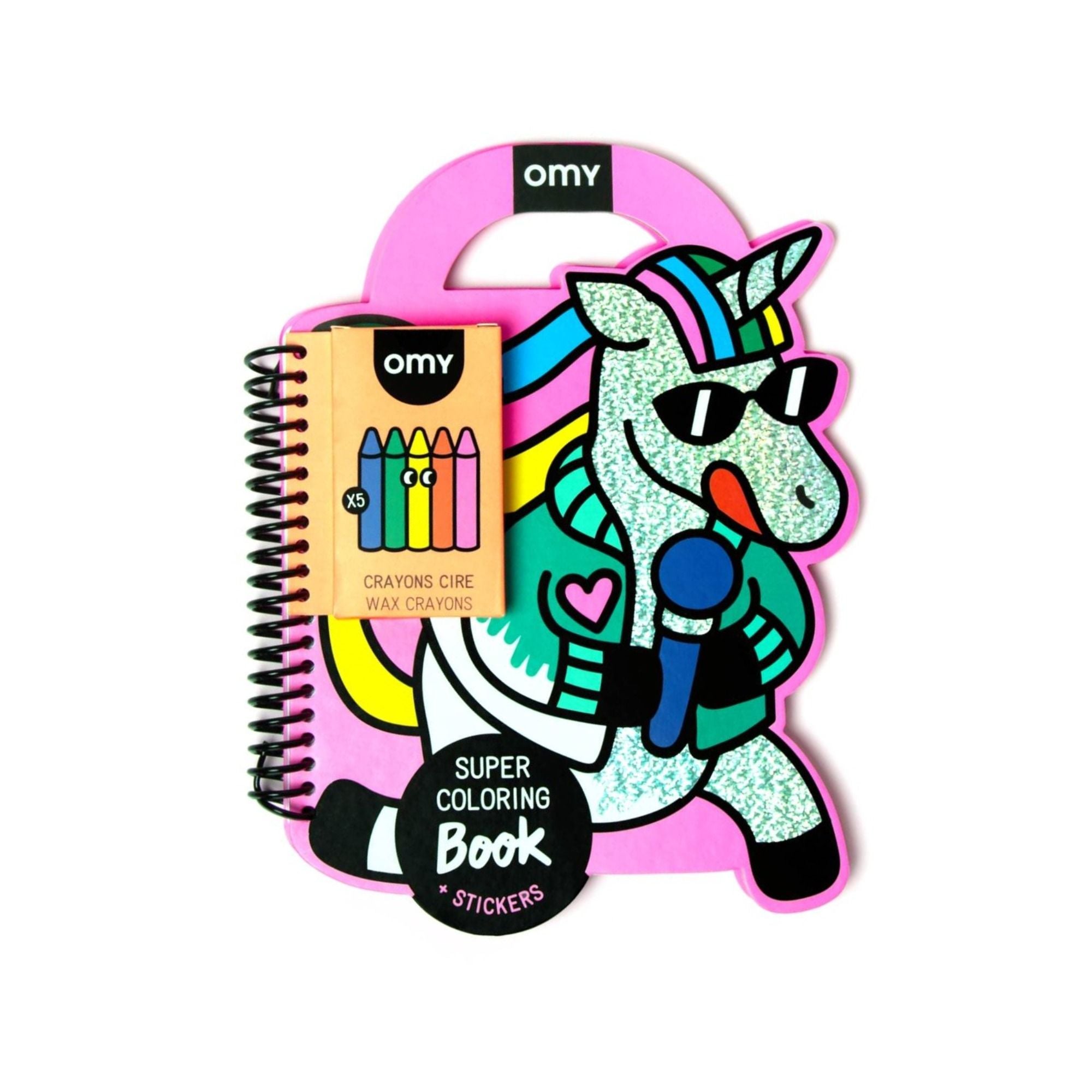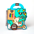 Das Set enthält zusätzlich zwei Stickerbögen zum Gestalten der Seiten sowie fünf farbenfrohe Wachsmalstifte, die speziell für kleine Kinderhände entwickelt wurden.