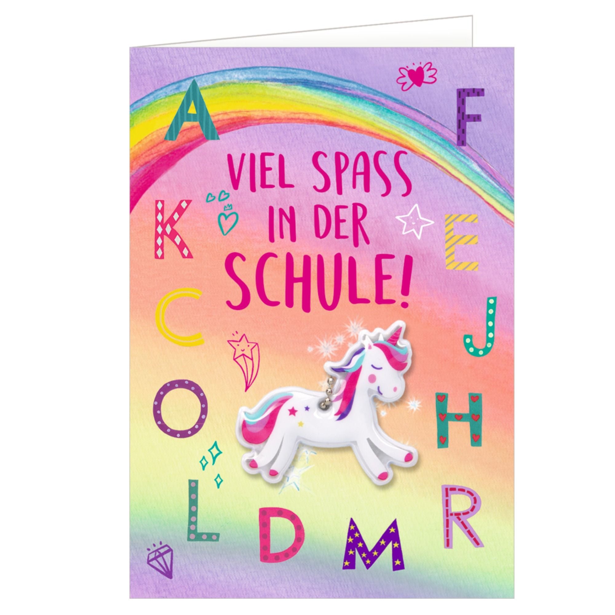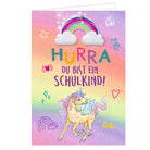 Eine originelle Grußkarte zur Einschulung mit abnehmbarem Anhänger – ideal als kleines Extra für die Schultasche. Die Doppelkarte mit Spotlack kommt inklusive passendem Kuvert. Der liebevoll gestaltete Anhänger lässt sich leicht abnehmen und später als dekoratives Accessoire weiterverwenden. Ein besonderes Detail für einen besonderen Tag.