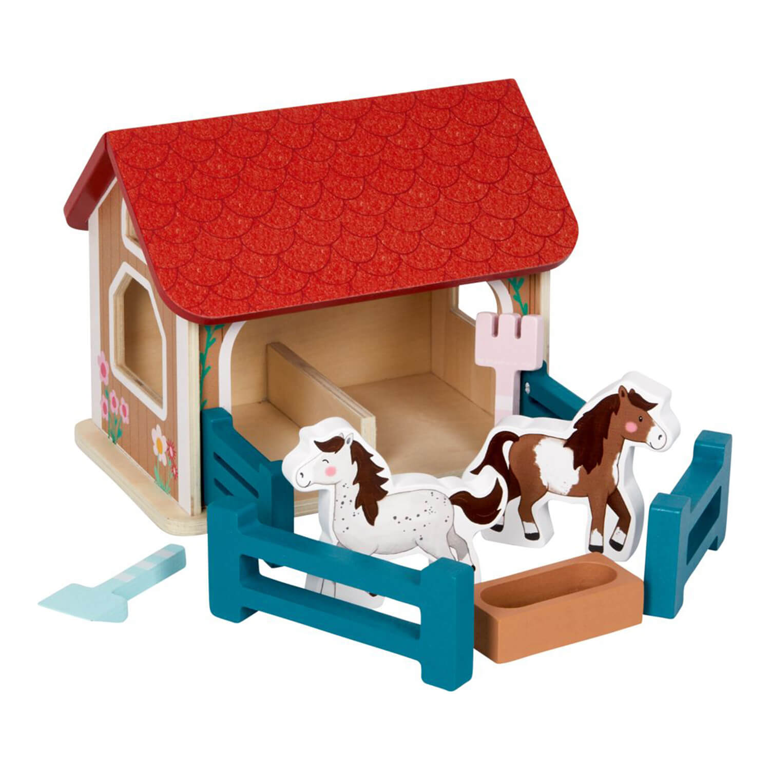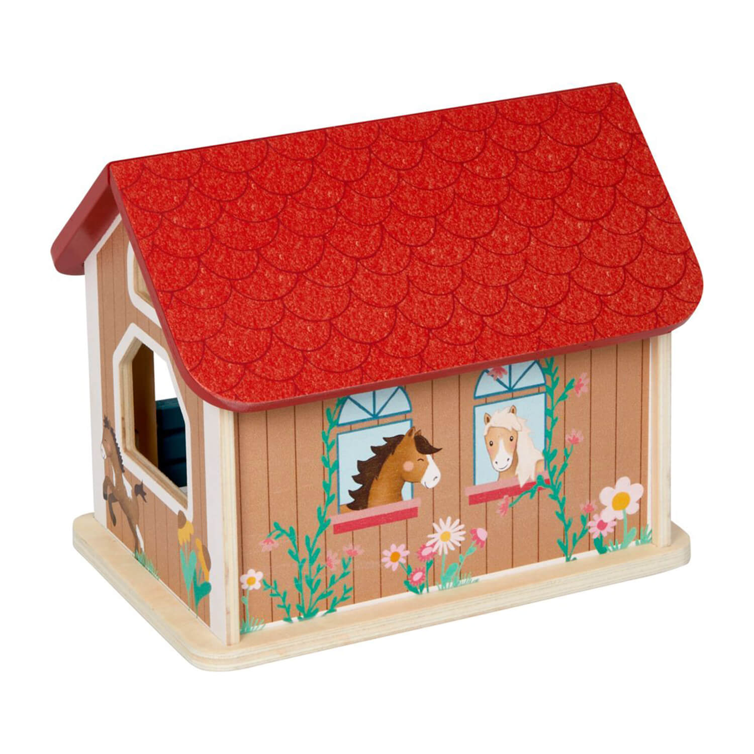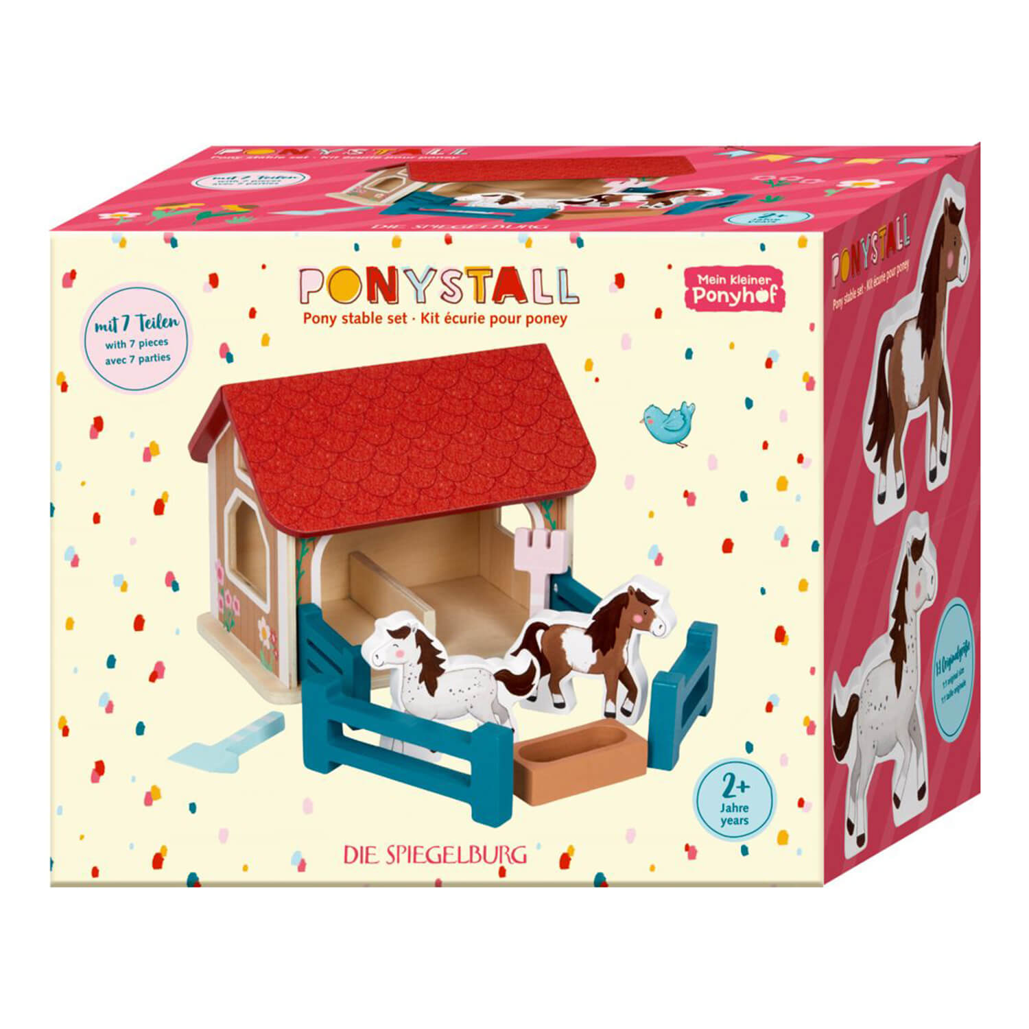 Großer Pony-Spielspaß für das Kinderzimmer! Dieses 8-teilige Spielset begeistert kleine Pferdefreunde und lädt zu fantasievollen Rollenspielen ein. Der liebevoll gestaltete Stall mit schwenkbaren Türen, zwei detailreichen Ponyfiguren, sowie einer großen und einer kleinen Hürde bieten realistischen Spielspaß für kleine Reiter. Der robuste Futtertrog, die handliche Mistgabel und Schaufel komplettieren das Set und bringen pferdestarke Abenteuer ins Kinderzimmer.