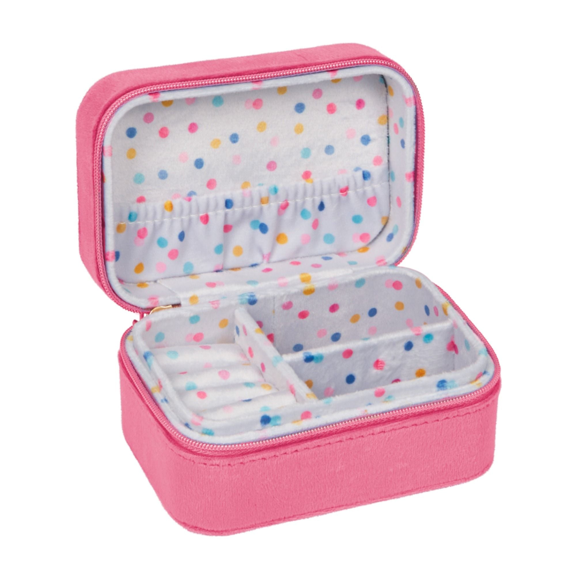 Dieses liebevoll gestaltete Schmuckkästchen von Die Spiegelburg bietet den perfekten Platz für Ketten, Armbänder und andere Lieblingsstücke. Mit feinen Stickereien, durchdachten Fächern und einem praktischen Reißverschluss bleibt alles ordentlich verstaut – ob auf dem Schminktisch oder unterwegs. Dank der handlichen Größe ist es der ideale Begleiter auf Reisen oder bei Übernachtungen. Gefertigt aus hochwertigem Polyester, ist das Kästchen nicht nur leicht, sondern auch besonders langlebig – ein stilvolles Accessoire für kleine Prinzessinnen und Schatzhüterinnen.