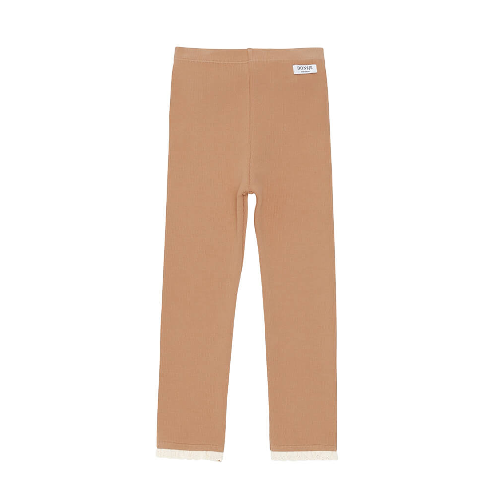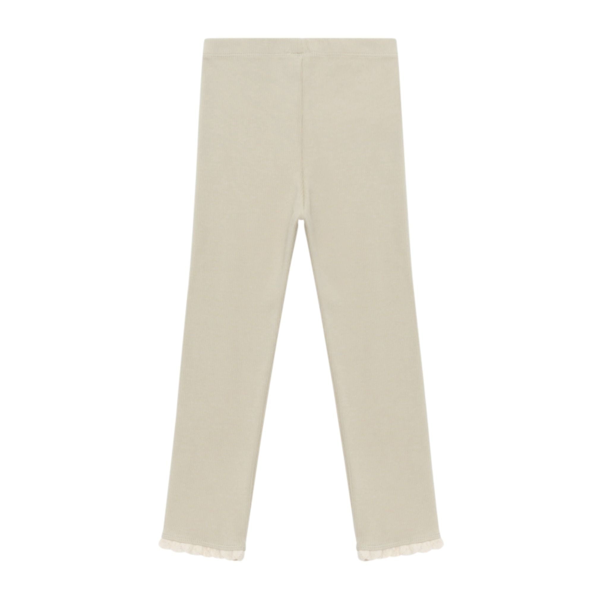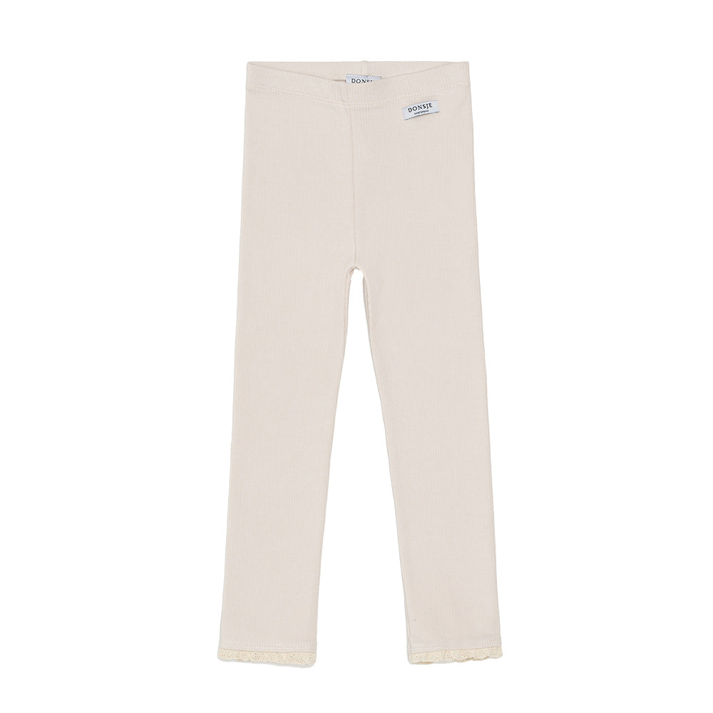 Die Affy Leggings ist ein stilvolles und bequemes Kleidungsstück für jede Saison. Der gerippte Baumwollstoff und die Spitzendetails an den Säumen machen diese Leggings einzigartig und charmant.