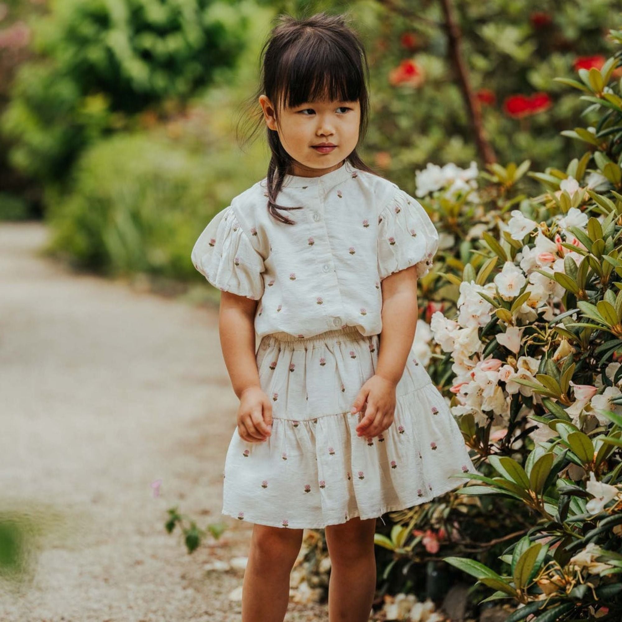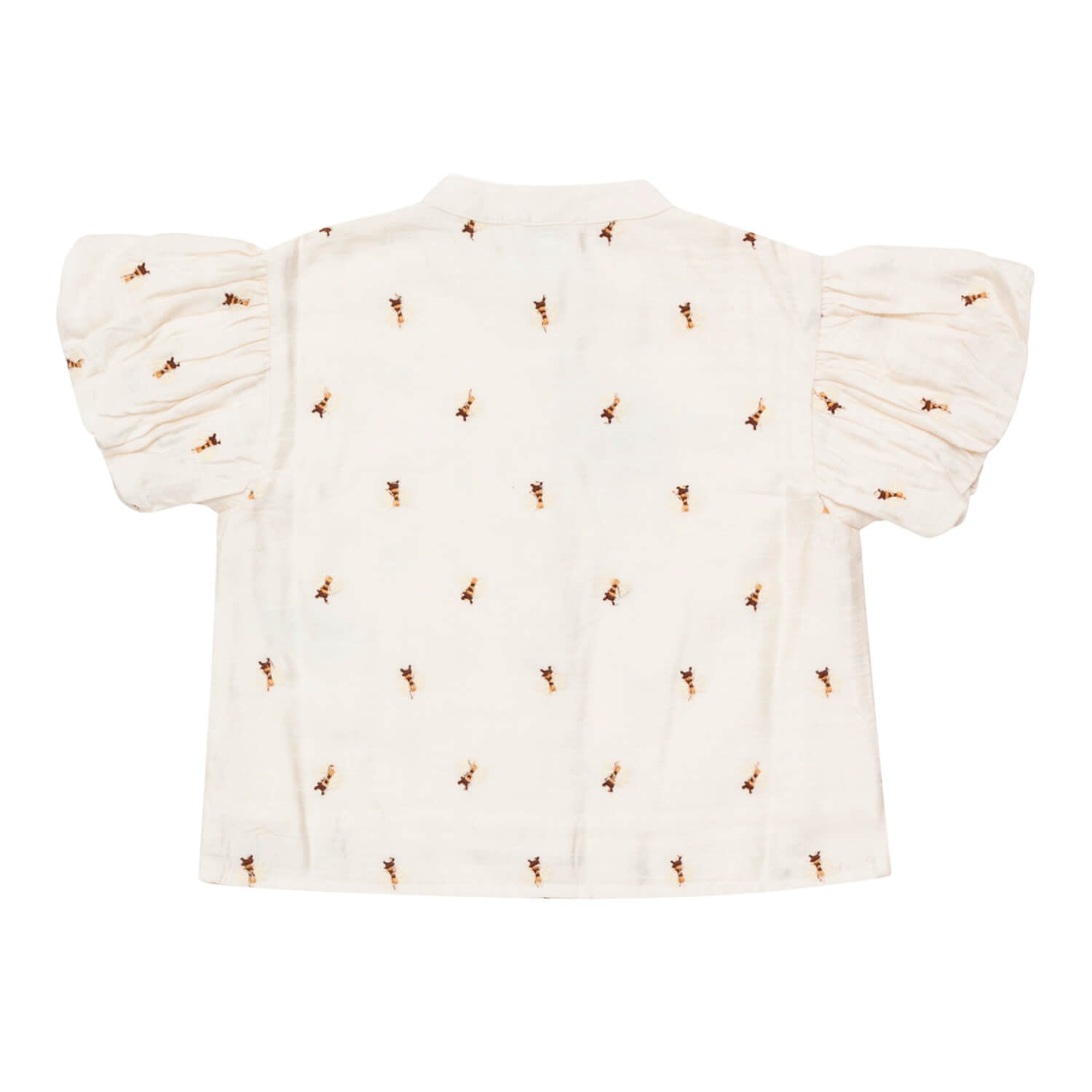 Diese bezaubernde Bluse verleiht jedem Sommeroutfit eine Prise Verspieltheit und Eleganz. Mit Knopfverschlüssen vorne, elastischen Ärmelabschlüssen und zarten Stickereien ist sie eine wunderbare und einzigartige Ergänzung für jede Mini-Garderobe.
