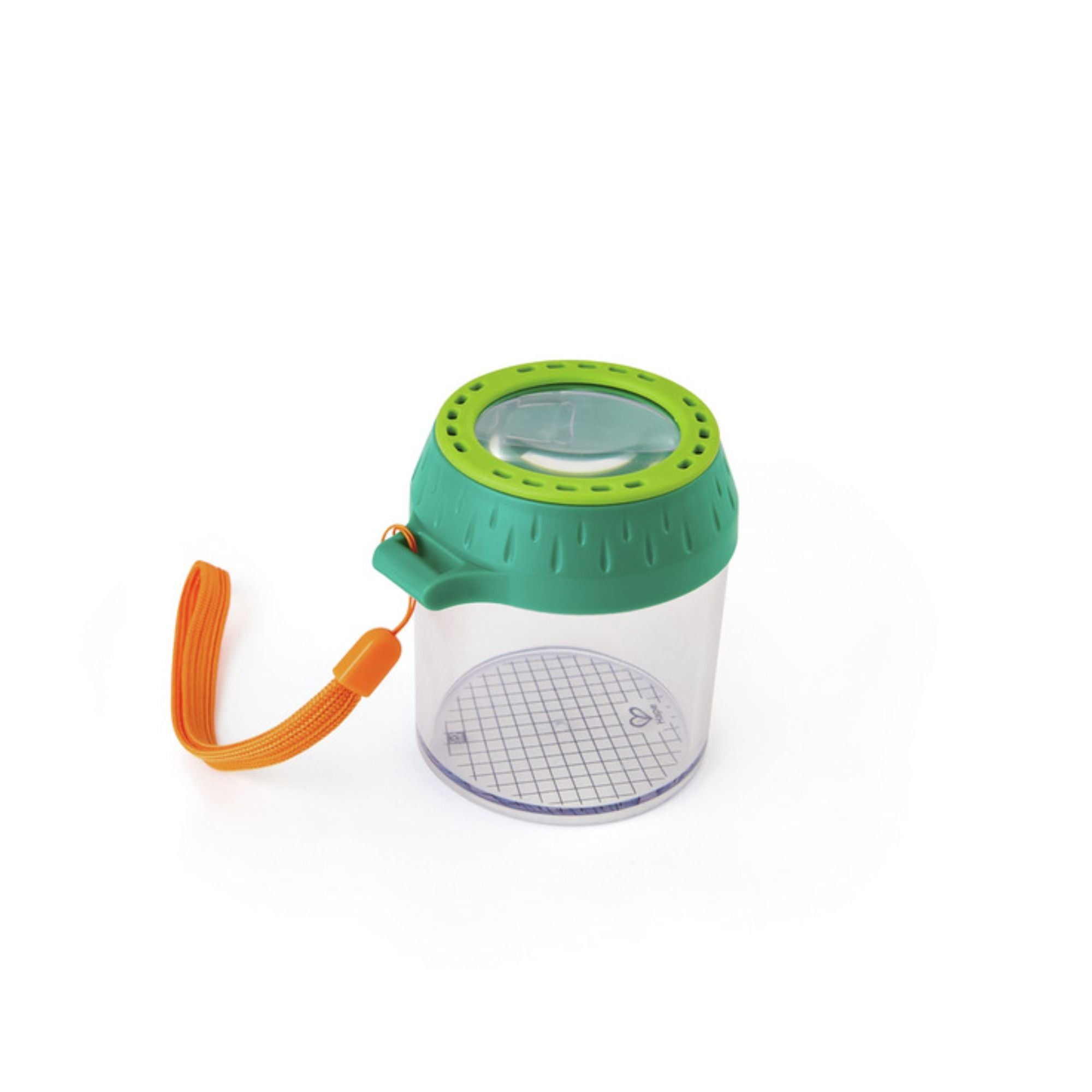 Mit diesem liebevoll gestalteten Entdeckerglas können Kinder die faszinierende Welt der Insekten hautnah erleben. Schon bevor sie das Wort „Insektenkunde“ schreiben können, sammeln sie erste spannende Erfahrungen mit Käfern und anderen kleinen Krabbeltieren. Das Glas ermöglicht ein sicheres Einfangen und späteres Freilassen der Tiere, während die integrierten Funktionen für eine genaue Beobachtung sorgen. Der Deckel verfügt über eine Lupe mit vierfacher Vergrößerung, und der Boden ist mit einem Messraster ausgestattet, um Körpergrößen oder Bewegungen zu erfassen. Belüftungsschlitze im Glas sorgen dafür, dass die kleinen Gäste ausreichend Luft bekommen. Ein integriertes Licht unterstützt die Mini-Biologen bei ihren Entdeckungen und fördert spielerisch das Interesse an der Natur.