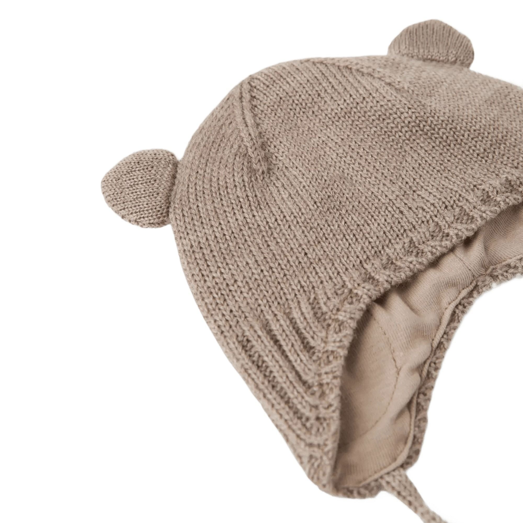 Diese warme Frühchen-Mütze aus weicher Wolle ist mit einem sanften Futter versehen und sorgt für wohltuende Wärme vom ersten Tag an. Die niedlichen Öhrchen setzen einen liebevollen Akzent, während die praktischen Bändchen dafür sorgen, dass alles sicher an Ort und Stelle bleibt – auch bei kleinen Abenteurern.