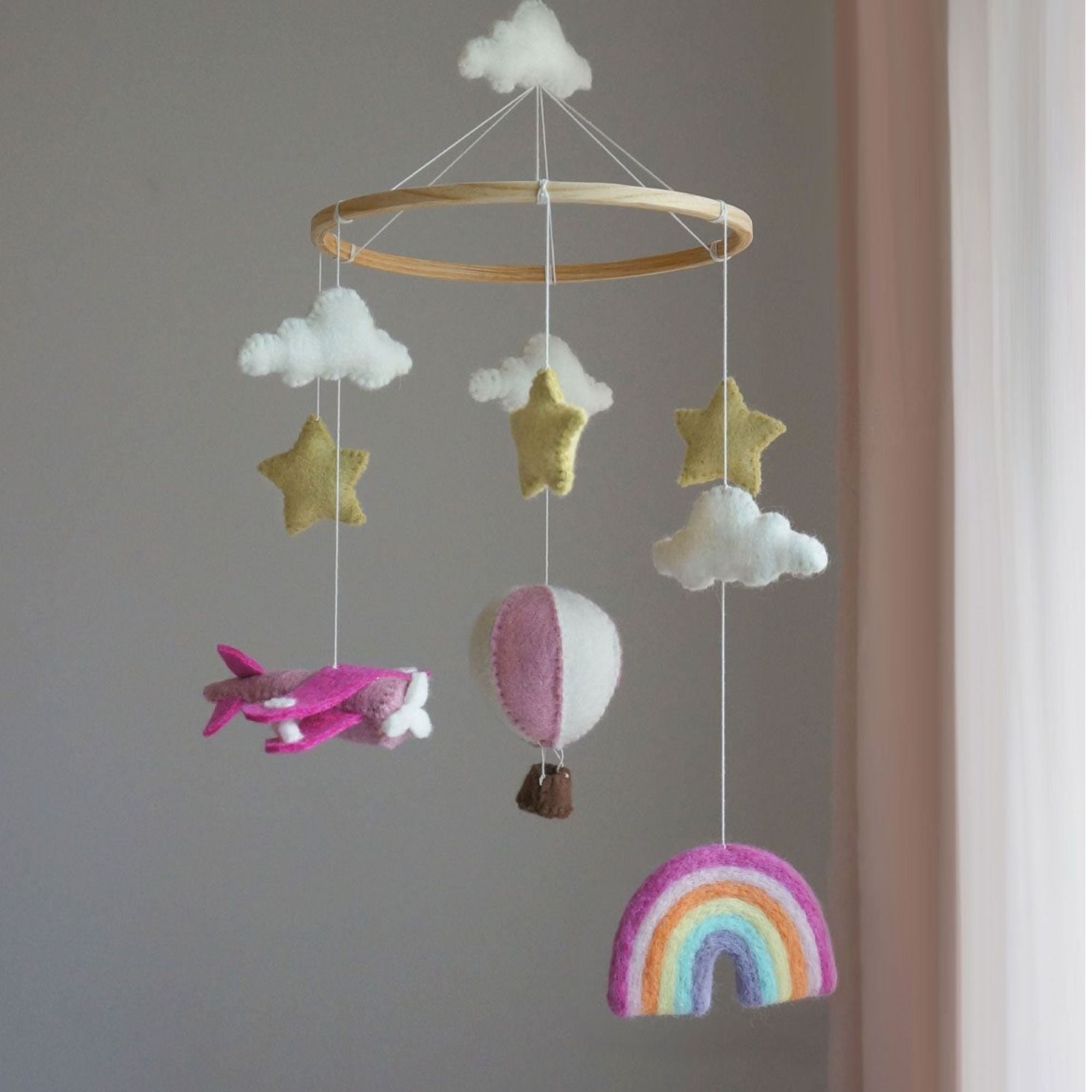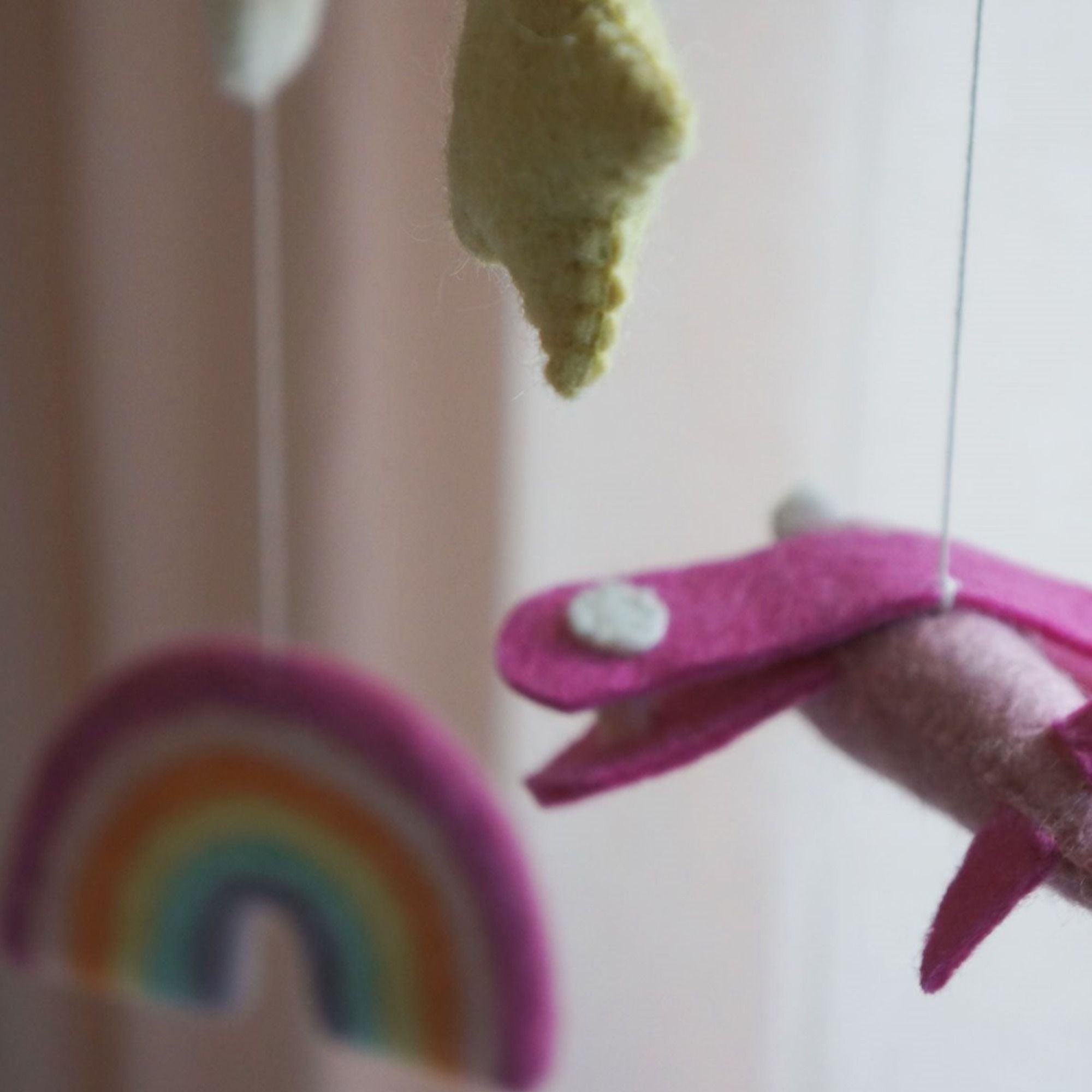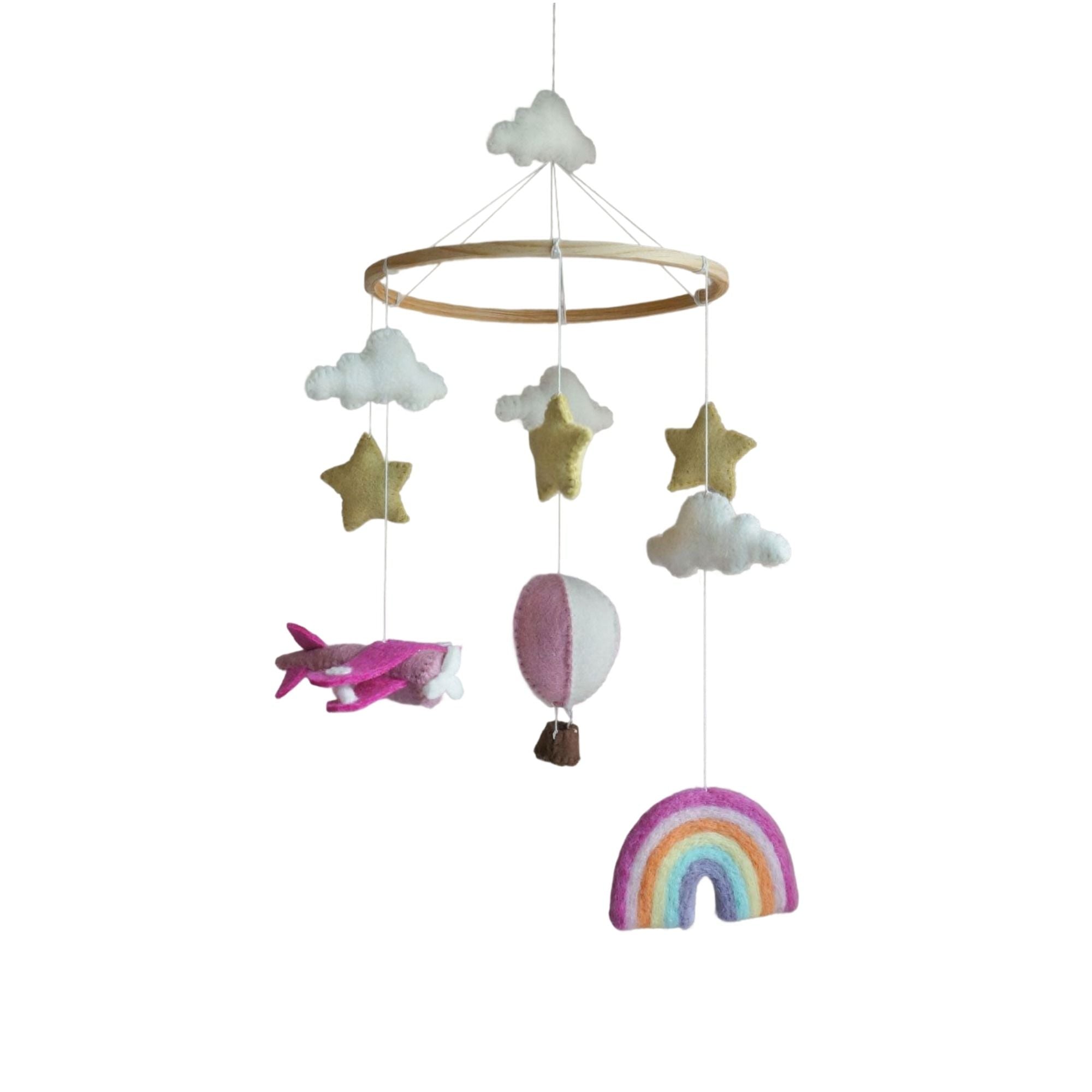 Mobile - Flugzeug und Regenbogen gefiltzt aus Wolle von Gamcha