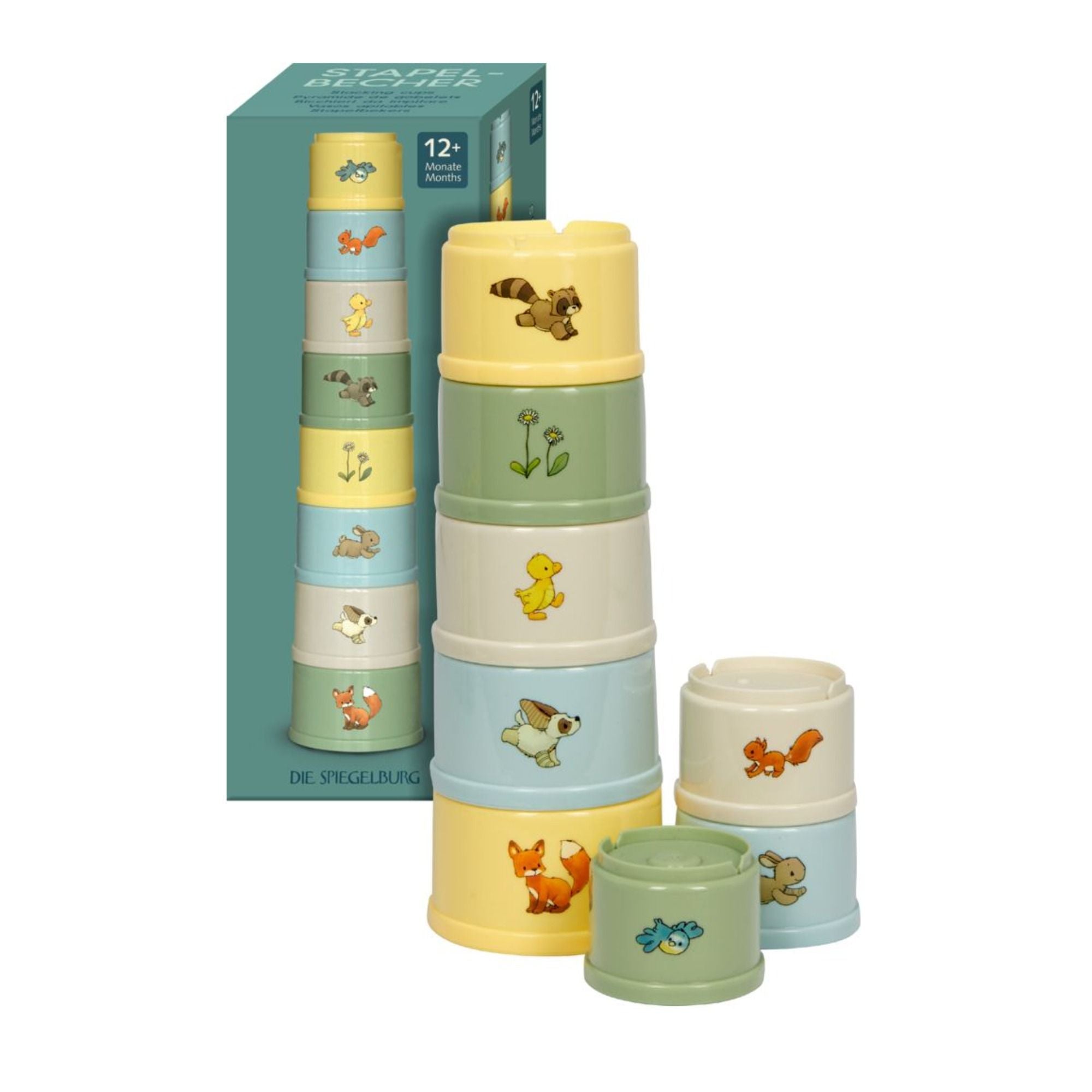 Ob hoch hinaus stapeln, ineinander stecken oder mit Wasser und Sand spielen, die acht liebevoll gestalteten Becher laden zum kreativen Entdecken und Ausprobieren ein.