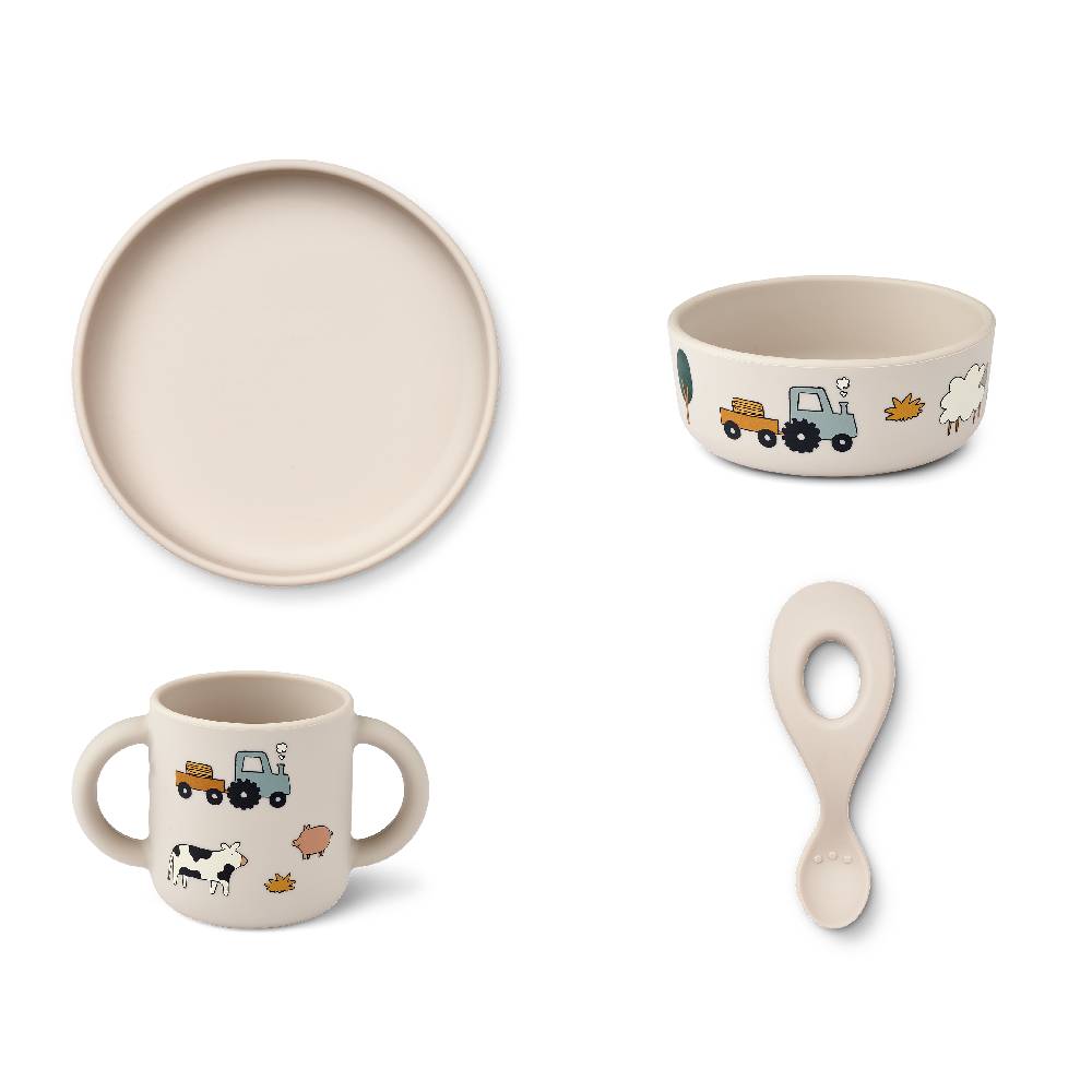 Das Bestseller-Geschirrset von LIEWOOD ist ein unverzichtbares Alltagsprodukt für Babys und kleinere Kinder. Es enthält eine Tasse, eine Schale, einen Teller und einen Löffel – alles aus langlebigem und bruchsicherem Silikon gefertigt. Perfekt für weniger unordentliche Mahlzeiten.