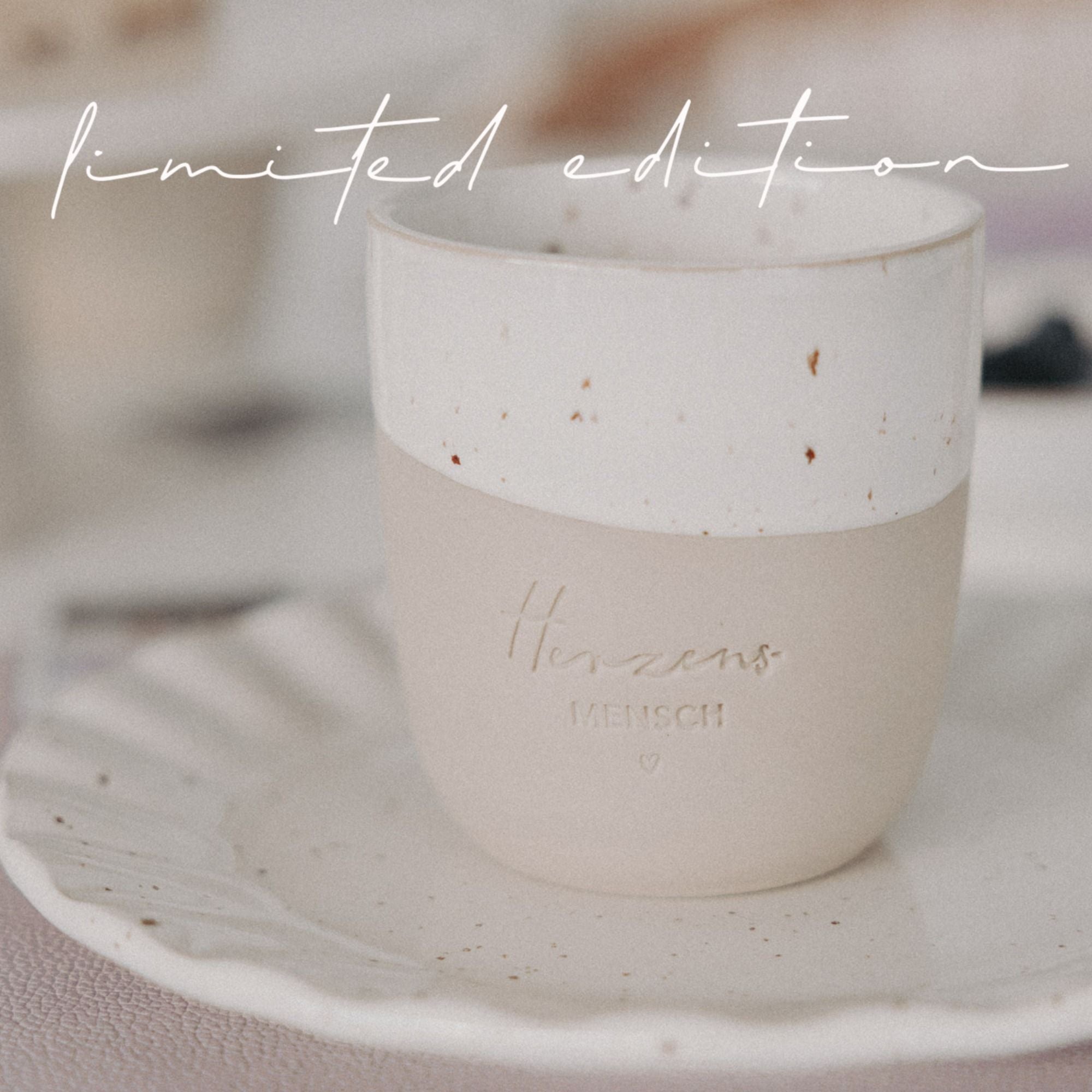 Limited Edition Becher aus Steingut "Herzensmensch"- Groß 320ml von Eulenschnitt