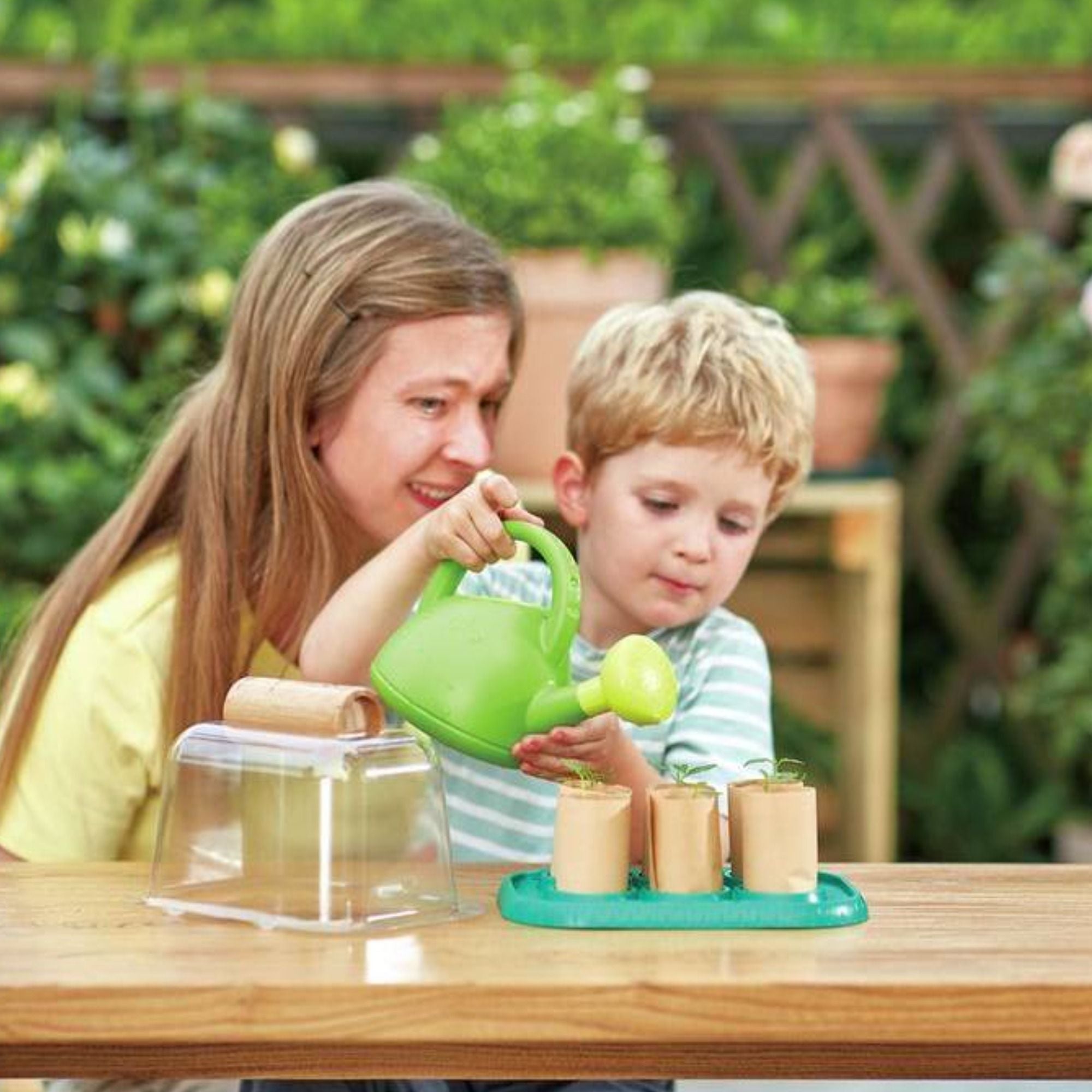Besonders kreativ: Die mitgelieferte Bambusrolle lädt zum Basteln von kleinen Papiervasen ein, in denen die Samen direkt ausgesät werden können. Sobald die Pflanzen kräftig genug sind, lassen sie sich ganz einfach ins Freie umsetzen – für echtes Gartenerlebnis mit selbst gezogenem Gemüse. Züchten, wachsen lassen und ernten wird mit diesem Gewächshaus zum Kinderspiel – ein nachhaltiger Spaß für neugierige Kinderhände!