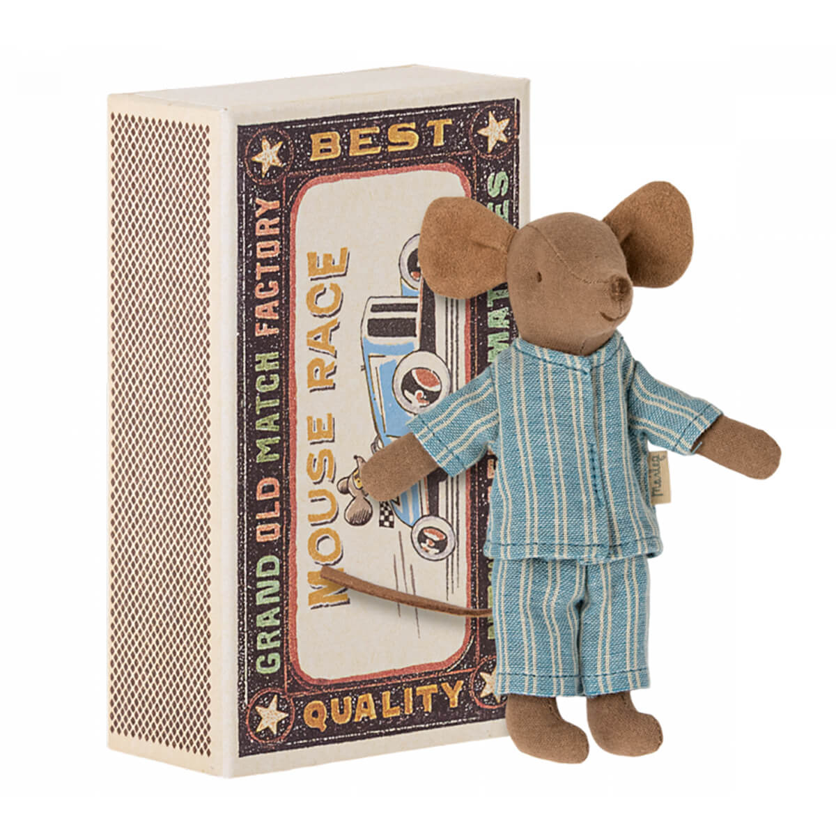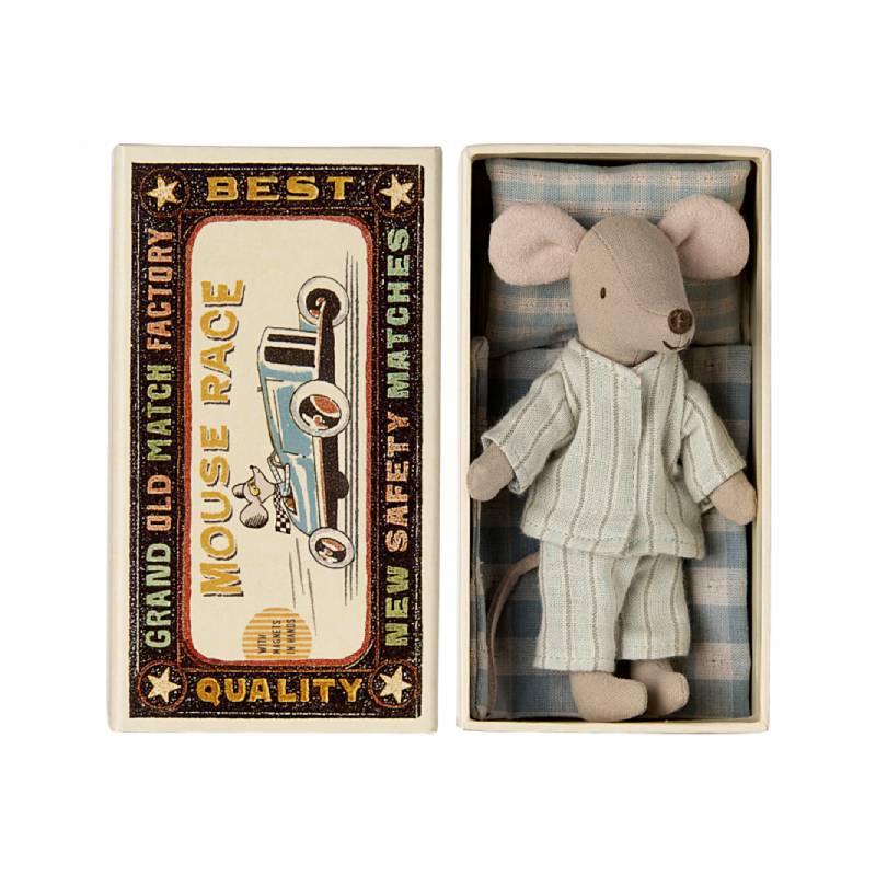 Ein klassischer Maileg Artikel. Diese Maus ist bereit für stundenlanges Spielen und schläft gut in einer kleinen Streichholzschachtel. Die Kleidung und Bettwäsche sind aus weichen Stoffen mit einzigartigen Drucken und schönen Farben.