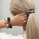 Vergessen Sie dünne Haargummis, die reißen oder ihre Elastizität verlieren. Unsere Haargummis halten selbst dickstes Haar fest an seinem Platz (und halten natürlich auch viel länger). Unsere Bangle Bands sind nicht nur Haargummis, sondern sehen sowohl im Haar als auch am Handgelenk wunderschön aus.