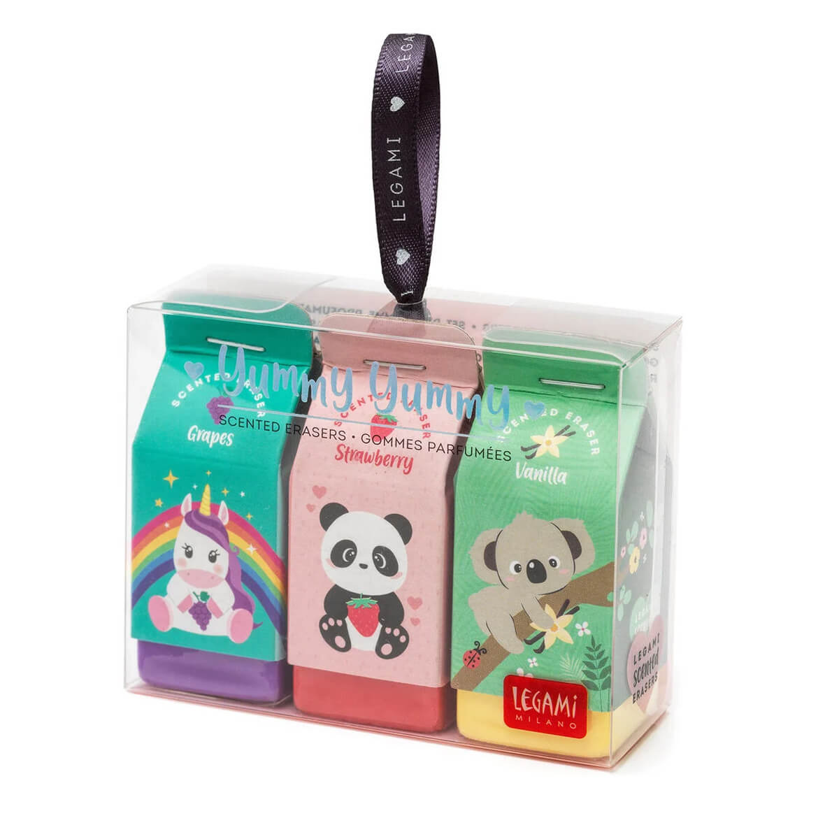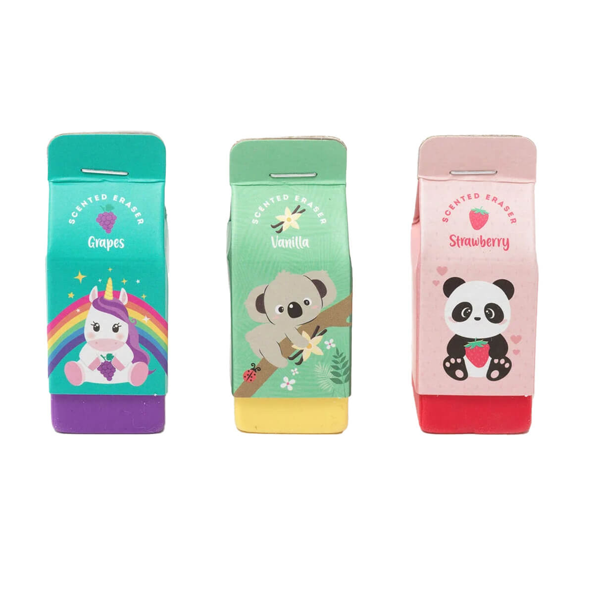 - Einhorn mit Traubenduft, Panda mit Erdbeerduft, Koala mit Vanilleduft