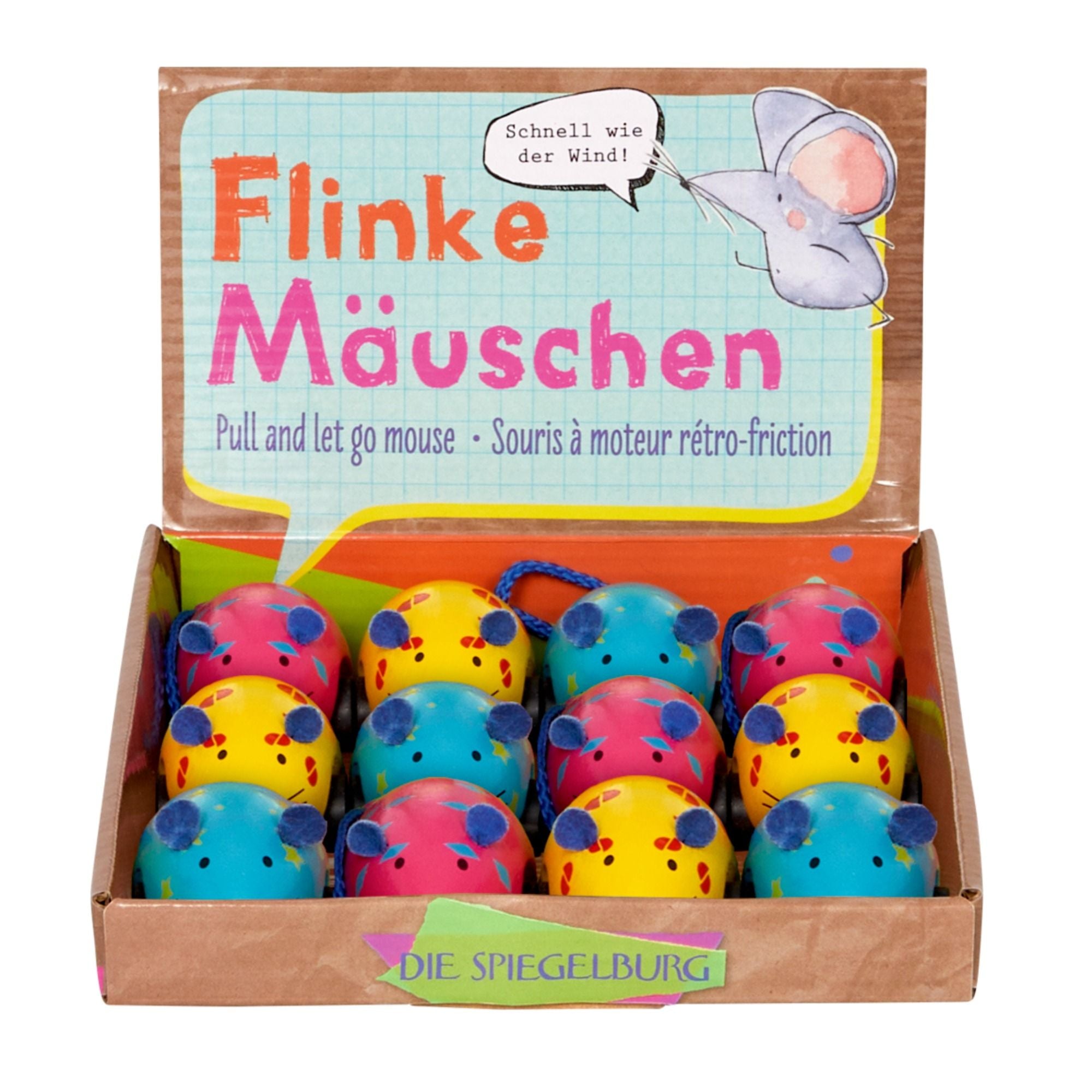 Das kleine Mäuschen aus Holz flitzt dank Rückziehfunktion über das Parkett und sorgt immer wieder für fröhliches Lachen – und manchmal auch für einen überraschten Schrei! Erhältlich in drei liebevoll gestalteten Designs.
