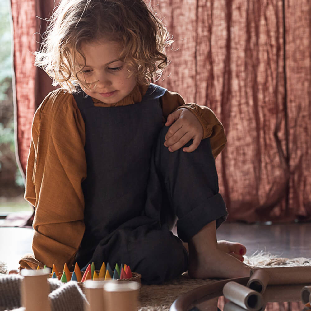 Es wirkt auf sie inspirierend, wie das Bedürfnis zu spielen fast dem zu Essen überschreitet und ihre Kinder dazu verleitet, sogar in der heißesten Mittagssonne draußen ihre Kreativität im Spielen auszuleben. Das Spiel in Kindern ist wie ein Erdbeben, das sich nicht aufhalten lässt, so sehr wir Erwachsenen uns auch bemühen. Freies Spiel, lose Teile, offenes und unstrukturiertes Material erschrecken uns täglich, weil es sich in das verwandelt, was sie entscheiden und was uns oft unberechenbar erscheint. Sie schlagen Materialen ohne Anweisungen vor, dessen einziger Sinn dahinter besteht, zu neuen Fantasie Welten umfunktioniert zu werden. Ein Material, das anregt, einlädt, die Schaffung von verschiedenen Welten verursacht, fantastisch, realistisch, erfunden wurde. Das ist die Grund Essenz von den Spielzeugen von Grapat: freies, kreatives spielen ohne viel Schnick Schnack.