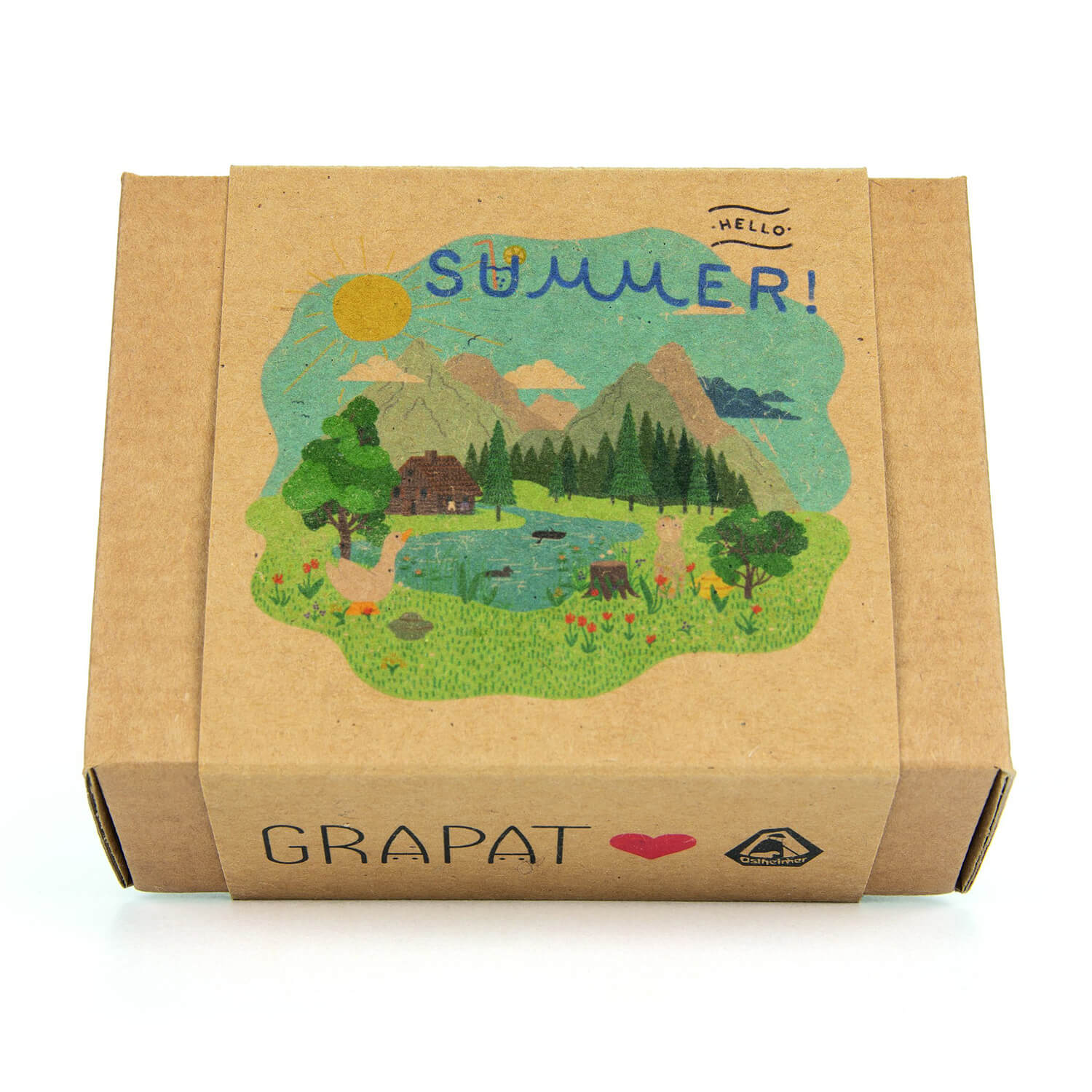 Grapat ist ein kleines Familienprojekt, das entstand, um aus natürlichen Gegenständen Spielzeuge zu erschaffen. Die Gründer von Grapat verließen ihre Heimatstadt, um in einer Natürlichen Umgebung zu leben. Mit der Zeit haben sie eine innere Bewusstseinarbeit geleistet, ganz nach dem Motto weniger ist mehr. So durfte ihre älteste Tochter jegliche alltägliche Gegenstände als Spielzeug benutzen. So wurden Bücher zu Straßen und Schals zu kleinen Hütten. Genau dieses Konzept verleitete sie dazu, ihre eigenen Spielzeuge nach diesem Konzept zu entwickeln.