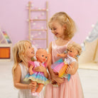 Ein goldener Glitzergürtel und goldene Tüllrüschen an den Schultern machen das traumhafte Puppen-Outfit perfekt. Durch raffinierte Materialien und einen Klettverschluss am Rücken ist es kinderleicht, das trendige Kleidchen seiner liebsten Puppe anzuziehen.