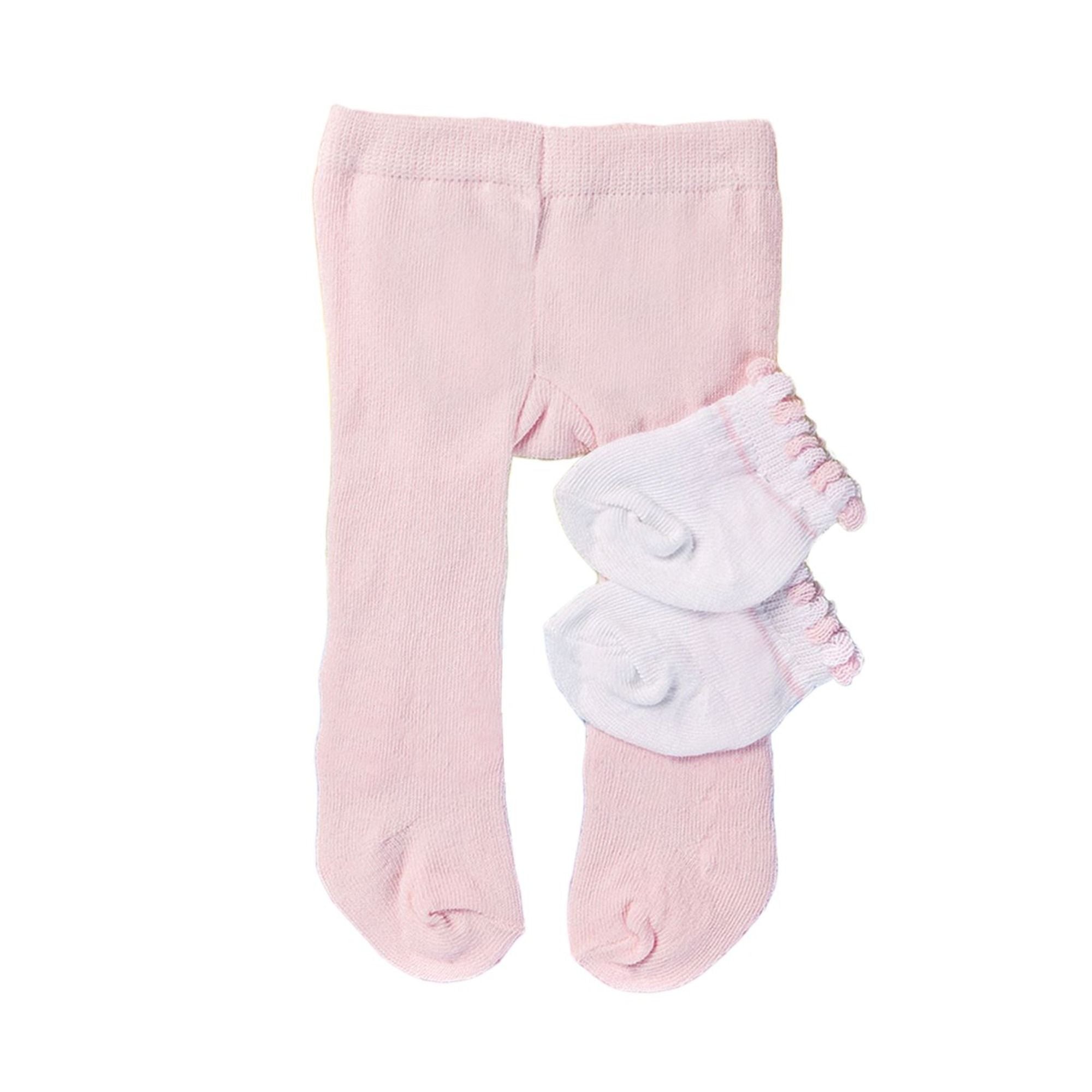 Diese zarte Strumpfhose in Rosa mit weißen Söckchen ist das perfekte Basic für jedes Puppenkleidchen.