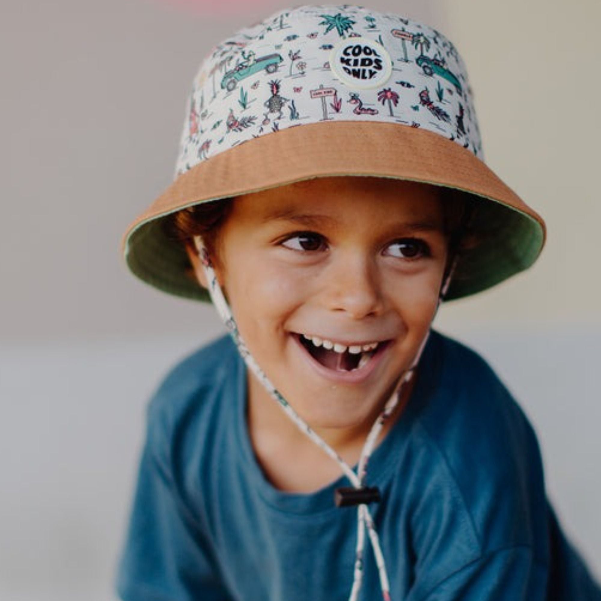 Dieser Fischerhut für Kinder und Babys verleiht einen bunten, originellen und charakterstarken Look. Er besteht aus Bio-Baumwolle und ist mit einem verstellbaren Kinnband ausgestattet, das für eine perfekte Passform bei allen Größen sorgt. Ein tolles Geschenk und ein farbenfrohes Accessoire für Kinder, das mit seinem „Cool Kids Only“-Patch jedes Sommeroutfit abrundet. Ideal, um Kids im Sommer stilvoll und bequem auszustatten!