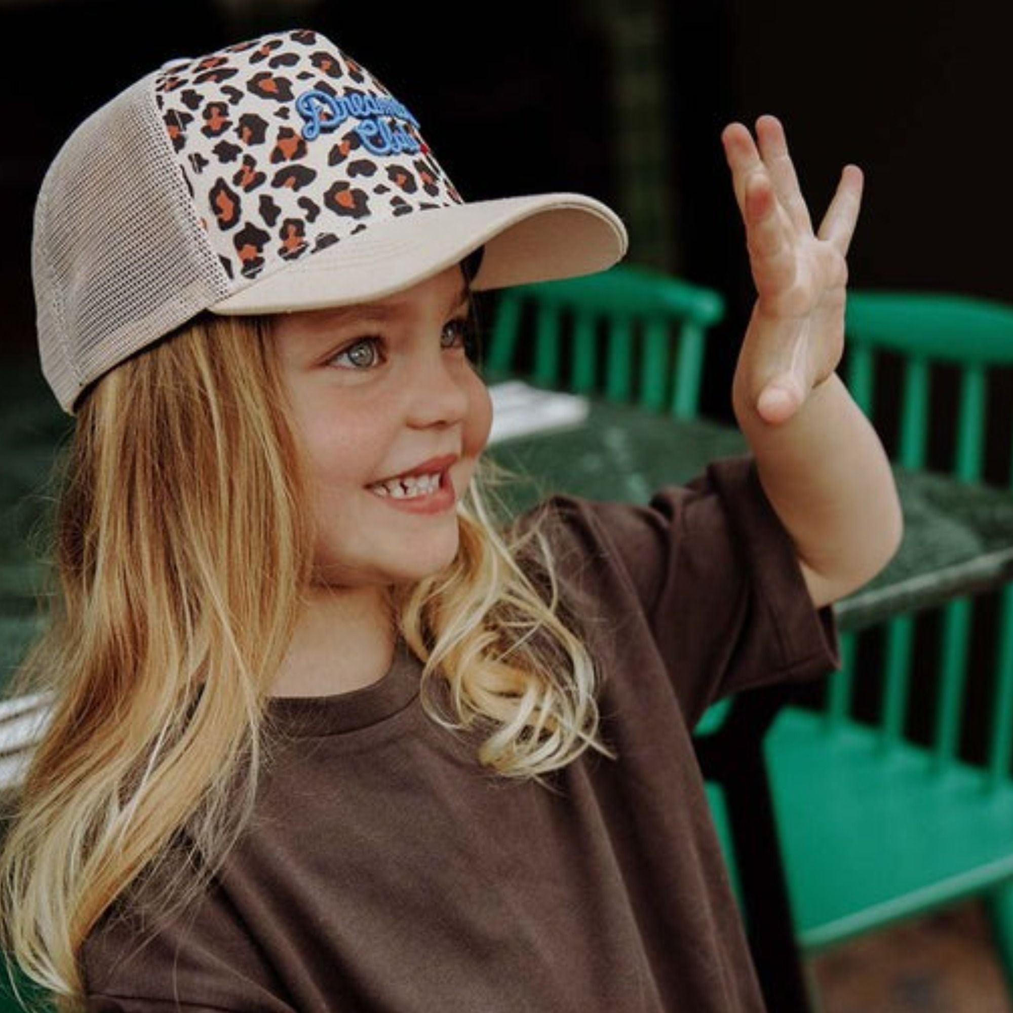 Die Kappe für Kinder, Babys und Eltern ist ein absolutes Highlight aus der Leopard-Kollektion. Diese wilde Cap besteht aus Bio-Baumwolle und bietet sowohl hohen Komfort als auch Langlebigkeit. Der verstellbare Riegel auf der Rückseite garantiert einen perfekten Sitz, während das auffällige Leoparden-Muster und gestickter Schriftzug einen einzigartigen und coolen Akzent setzt.