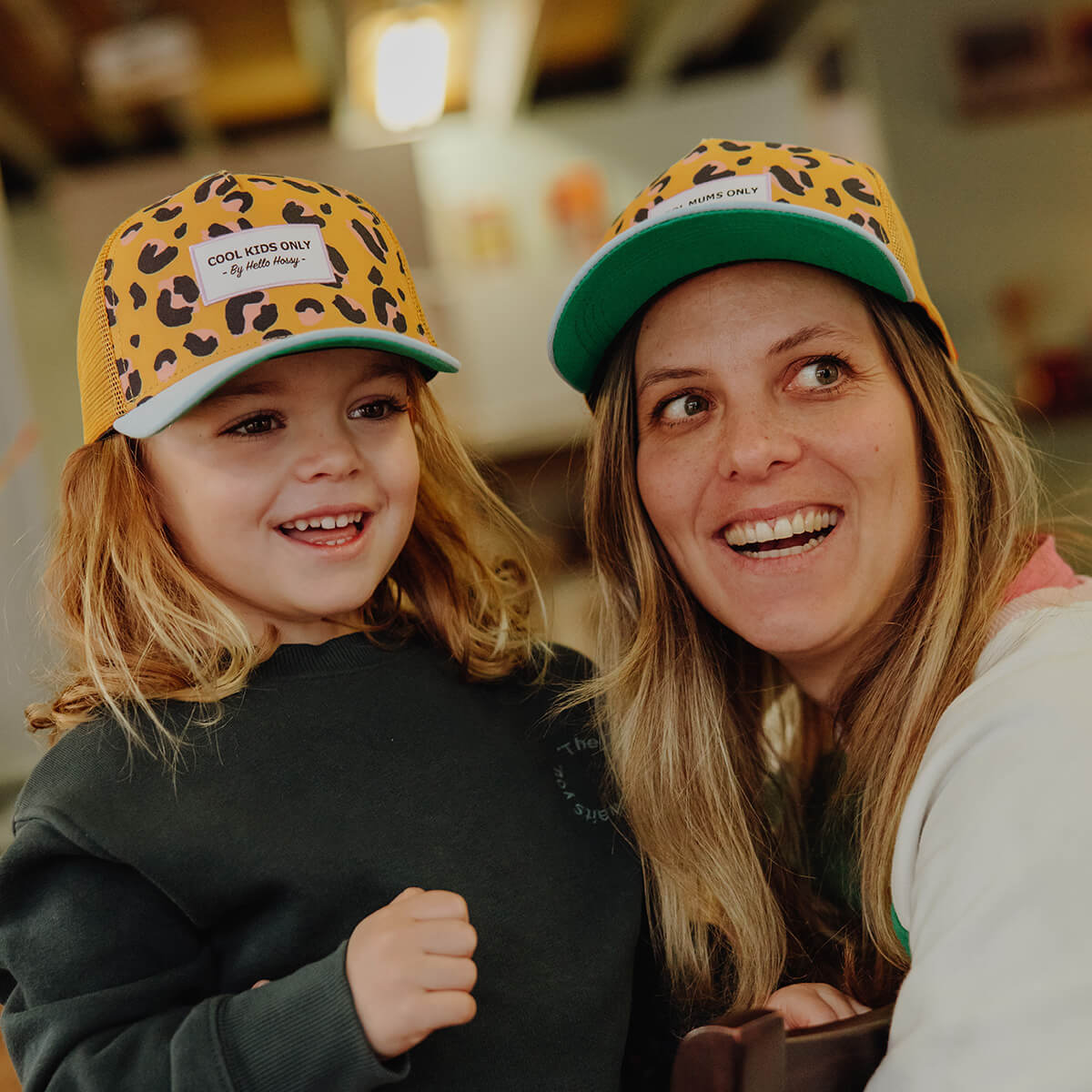 Die Kappen sind tolle Accessoires mit coolen Designs. Ihr Stil, ihre bunten Akzente und ihr frischer Look wird Sie begeistern. Die Kappen sind aus umweltfreundlichen Materialien hergestellt. Manche Modelle sind auch für die Mama oder den Papa erhältlich.