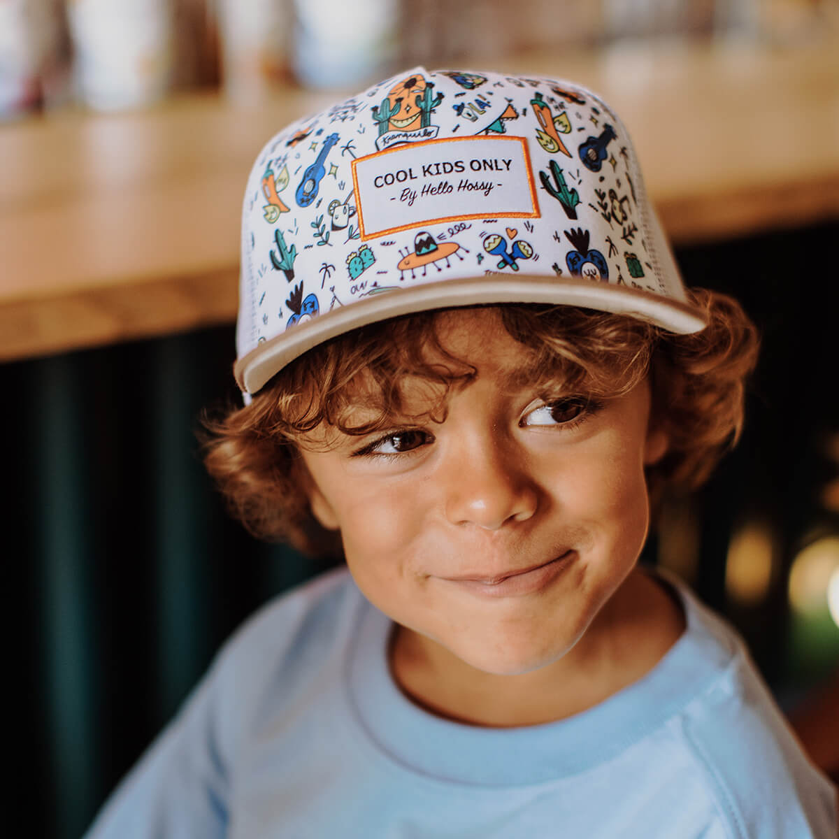 Hello Hossy® arbeitet voll Schwung und Leidenschaft an originellen, ausgefallenen, farbenfrohen, ikonischen, kreativen und charaktervollen Kappen für alle Kinder. Hinter Hello Hossy® stehen Murielle & Ludo, glückliche Eltern von zwei kleinen Söhnen. Uns begeistert die Idee, für euch eine Marke von Kappen der besonderen Art zu kreieren, frisch, gepflegt, originell, die eure Kinder begeistern wird.