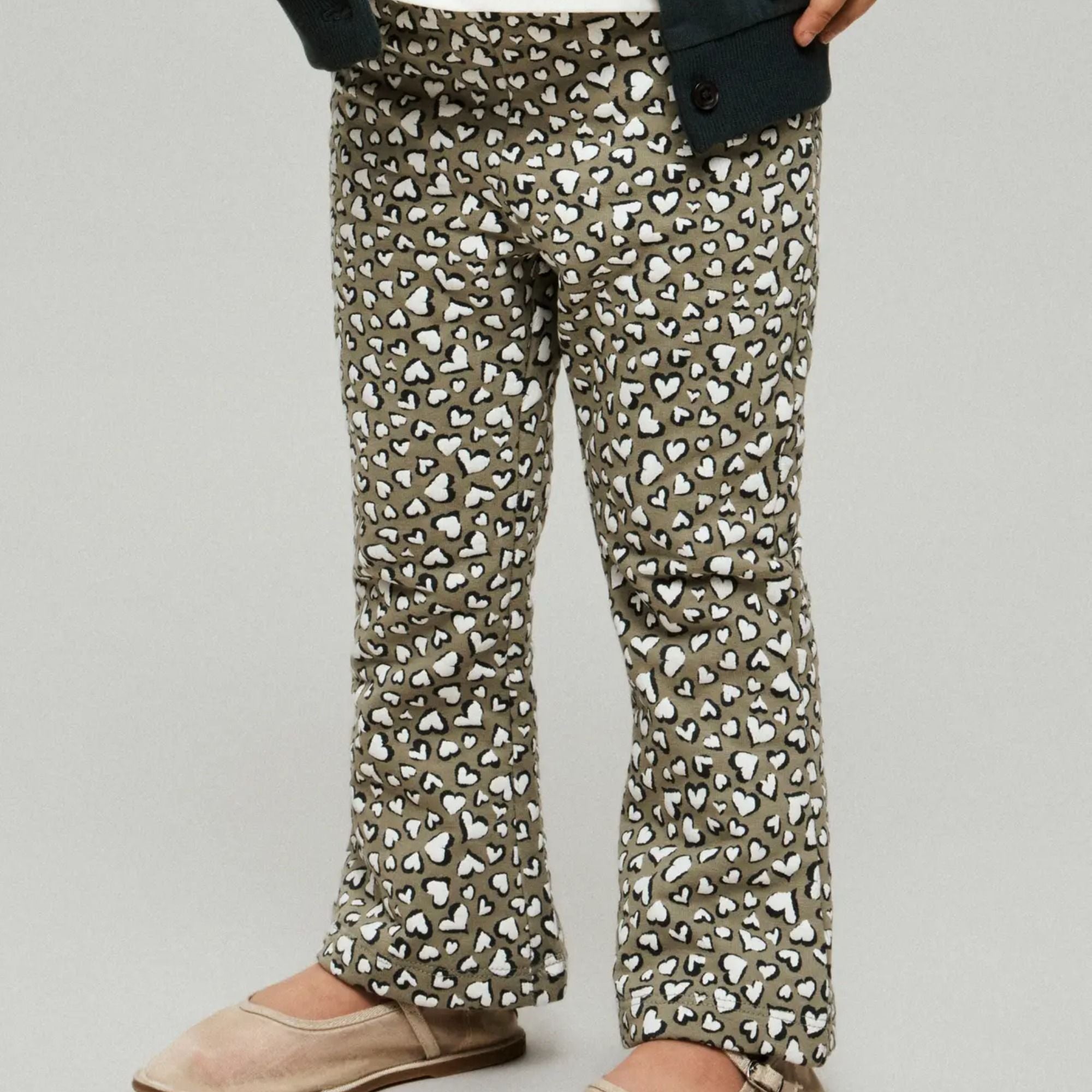 Diese Kinder Schlaghose Leggings aus weicher Bio-Baumwolle begeistert mit einem verspielten Herzchen-Leoprint, der jedem Outfit einen fröhlichen Akzent verleiht. Das elastische, hautfreundliche Material schmiegt sich sanft an und ermöglicht viel Bewegungsfreiheit beim Spielen und Toben. Die leicht ausgestellte Passform sorgt für zusätzlichen Komfort und macht die Leggings zu einem idealen Begleiter für den Alltag kleiner Entdeckerinnen.